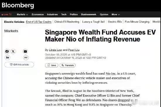新加坡政府投资公司GIC起诉蔚来这事,源于一个旧闻,不是新闻。