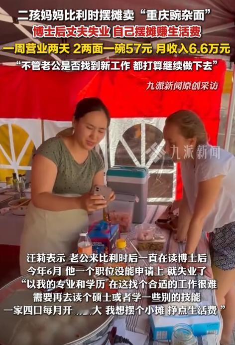 “这简直是捡钱啊!”近日,一重庆女子和博士后丈夫因为失业没工作,突然想到在比利时摆摊卖豌杂面,他们一周只上两天班,却能一个月收入66000元!女子直言即便是丈夫找到工作了,他们也打算继续把这个“副业”做下去,网友:还是老外的钱好赚啊! 5月份,汪莉和丁先生在比利时生活了十年,两个孩子都是在当地出生的。 丁先生做农业科研,是博士后,可去年6月申请新工作失败,突然失业,一家四口的房租和生活费压得喘不过气。 汪莉想找工作,但专业和学历在当地不对口,“要么重新读硕士,要么做体力活,根本没法兼顾家庭”。 走投无路时,汪莉想起摆摊。 最开始她打算卖炒饭炒面,但集市里已经有越南摊主做类似生意,管理员提醒她得有特色。 刷视频时,她看到了重庆豌杂面,“咱是重庆人,家乡味肯定有特色!”问题是,她以前从没自己做过豌杂面,只能跟着视频一步步学。 第一次出摊前,她心里忐忑得很。 提前一天泡豆子、炒杂酱,用鹰嘴豆代替本地买不到的豌豆,还把辣椒分装好,让顾客自己加,怕老外吃不惯辣。 丁先生更别扭,一个搞科研的站在路边卖面,总觉得不好意思,刚开始站在摊位五米开外,不敢上前。 他们选在新鲁汶大学附近的集市出摊,这里周二和周六允许全天摆摊。 第一天碰上下雨,汪莉把广告牌写成“中国的面”,不少人好奇探头,但没人敢尝。 直到一个学生模样的老外鼓起勇气点了一碗,第一口就竖起大拇指,当场又追加一碗。 那天卖了30多碗,收摊算账时,居然赚了几百欧元,夫妻俩一下有了底气。 慢慢摸索后,生意越来越好。汪莉把面条分成7欧元的细面和9欧元的宽面,份量控制在二两左右,刚好符合老外胃口。 丁先生彻底放开了,戴着厨师帽、系着围裙,熟练地加佐料、收钱,还会和熟客聊两句。 后来他们又加了韭菜盒子和手工包子,老公种的韭菜卖不出去,做成盒子居然成爆款,每次都卖不够。 现在一周只出摊两天,从早上9点到下午四五点,一天能卖近100碗,最高一天收入快1000欧元。 别看只出两天,背后准备工作很辛苦:提前采购食材、炒杂酱、准备配菜,汪莉的手经常被热油烫出小水泡。 但每次看到熟客满意的表情,她就充满干劲:有比利时大叔每周都来,还带朋友来,直夸“这是吃过最好吃的中国美食”。还有华人专程从隔壁城市开车过来,吃面时红了眼,说“味道和重庆老家一模一样”。 摆摊手续其实不难,汪莉办了税号和卫生许可证,每个季度按时报税,摊位费也不贵。 扣掉成本,纯利润够覆盖全家开销,比丁先生以前上班挣得还多。 有人质疑炒作,丁先生摇头:“都是为了养家,能让老外吃到地道中国味,我们挺开心的。” 丁先生现在还在找科研工作,但汪莉已经把摆摊当成事业:“不管他找到没找到工作,我都要继续做。过去八年我围着家庭转,现在终于有了自己的价值。” 摊位前常排长队,不少老外提前在社交平台问“这周出摊吗”,还有人学着用筷子吃,笨拙的样子逗得她笑。 从博士后夫妻到街头摊主,从零基础学做面到月入六万多,汪莉的经历告诉人:生活没有固定答案。 不管是搞科研还是卖面,靠双手吃饭、靠本事赚钱,都能活出底气。 而那碗香喷喷的豌杂面,不仅撑起了一个家庭,也成了跨文化的小纽带,最动人的交流,有时就在烟火气里。 对此你怎么看? 信源:九派新闻