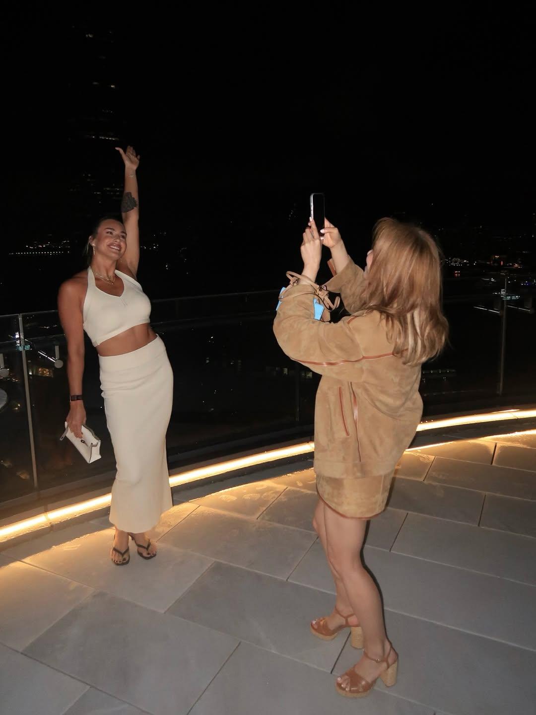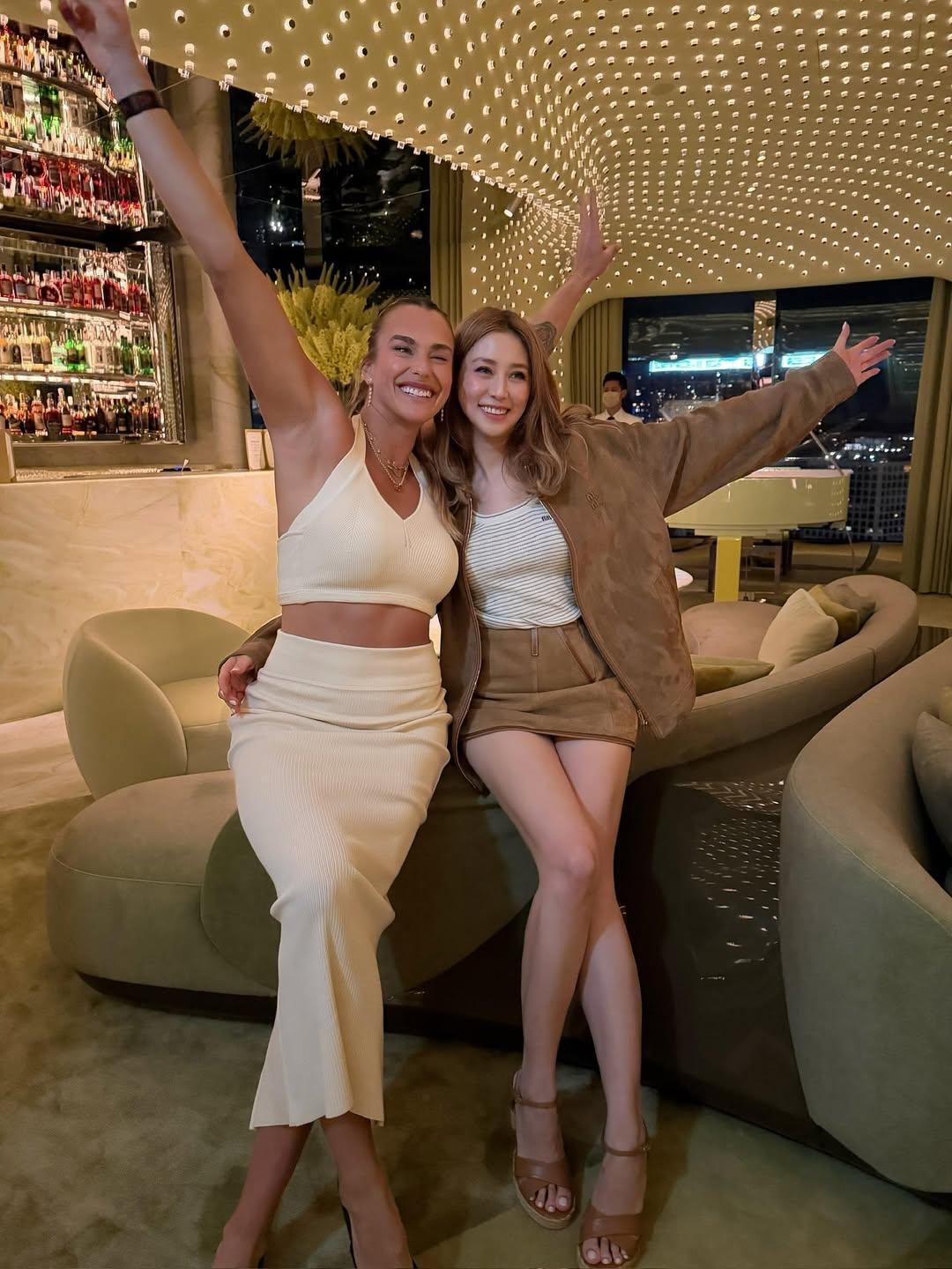 徐子淇李家诚夫妇和网球运动员萨巴伦卡合影