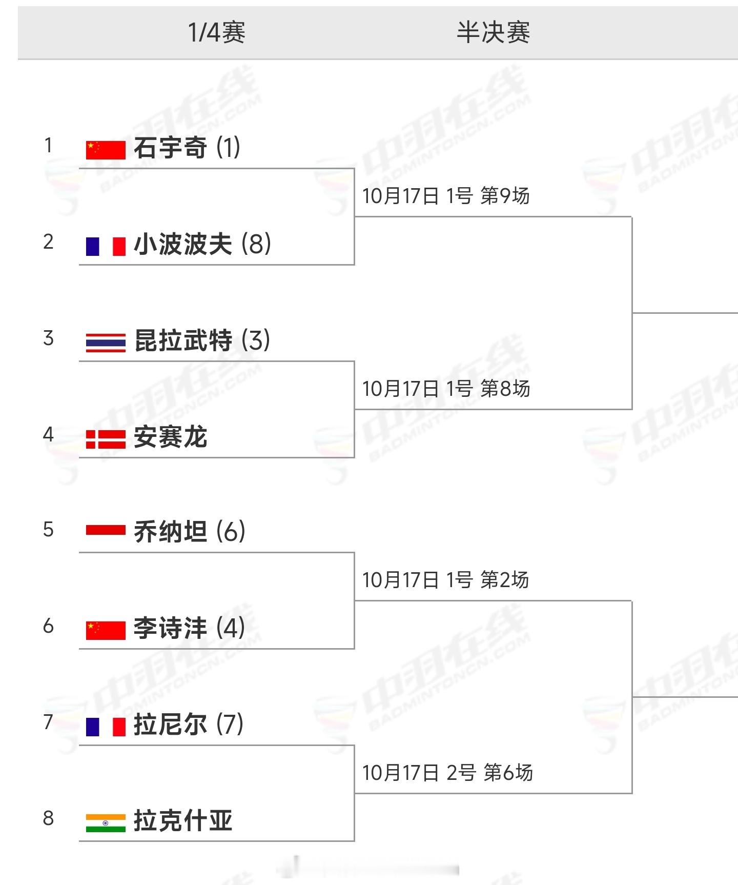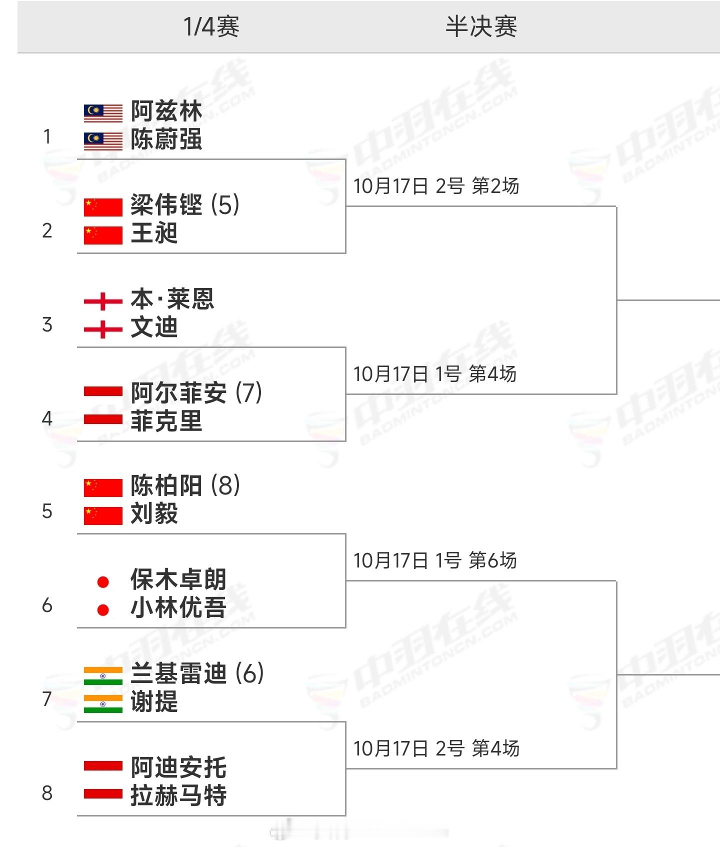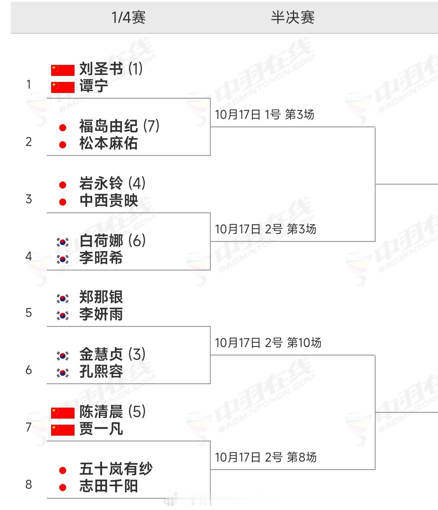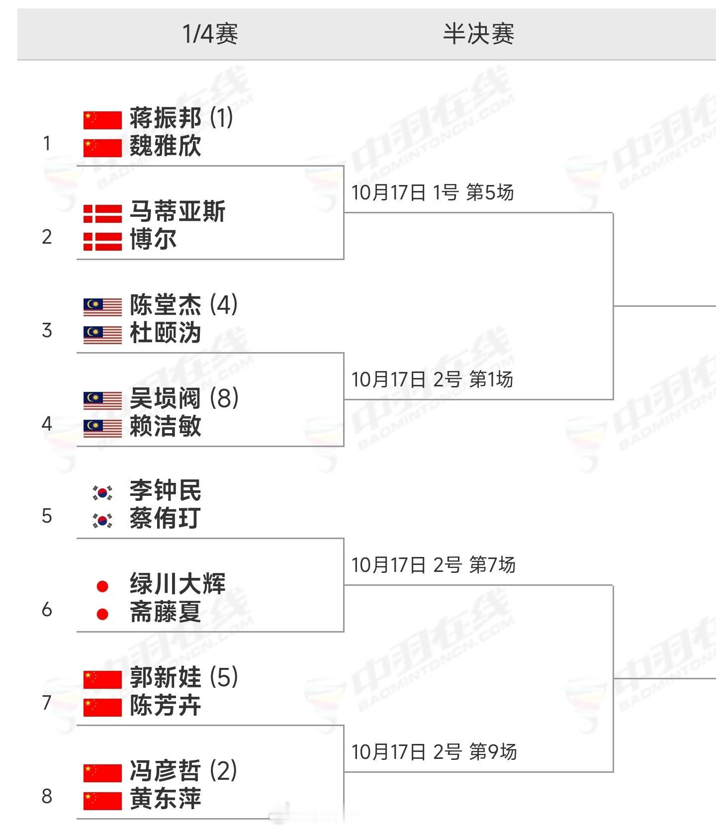 有趣的是,女单(图3)1234种子进入八强,男双(图4)则是只有5678种子进入八强!