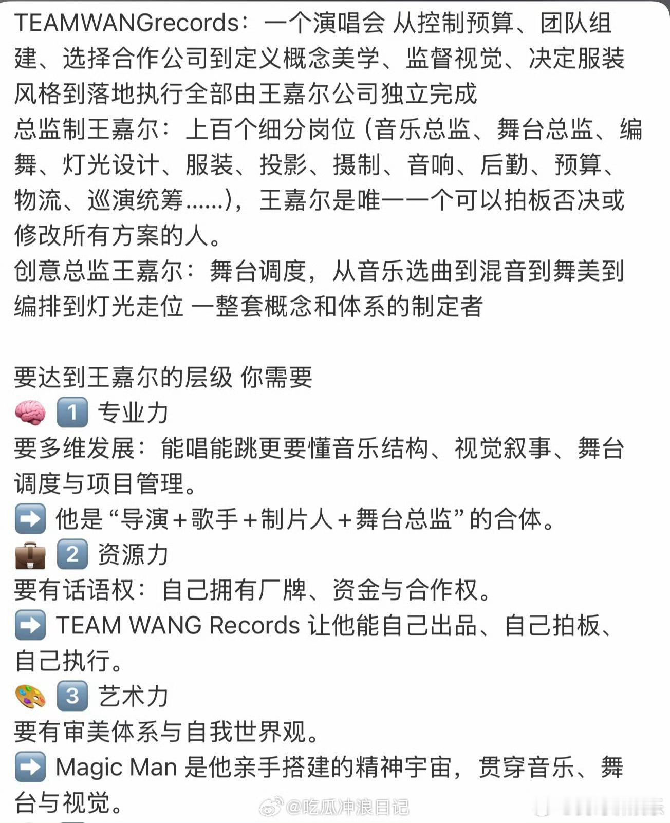 王嘉尔 把事业调成手动挡 王嘉尔演唱会幕后全是他的名字!拒绝躺平选手动挡,把控每个细节,前辈朋友鼎力支持,用实力诠释什么叫梦想的领导者。