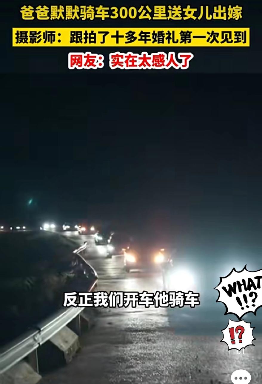 父爱如山!父亲骑行300公里送女儿出嫁! 10月16日凌晨,贵州一位父亲的女儿出嫁,他本人因严重晕车,他选择独自骑行。从思南县骑摩托车300公里至贵阳清镇市送女儿出嫁,耗时3小时左右。 不得不感叹,父爱如山! 这位父亲把爱融进300公里的征程里,让每一寸山路,都成了父爱的见证。 这一路轰鸣的引擎声,是对女儿未来的无限期许,比任何祝福都响亮! 父爱如山 父爱 爸爸送女