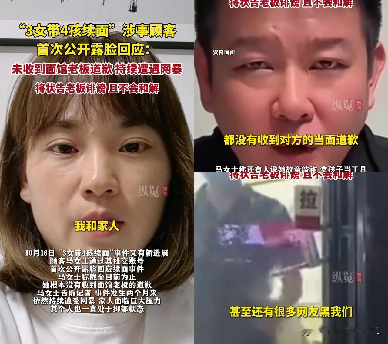店都关了,她却哭着说“我从来没赢”,续面事件的结局,怎么比开头还揪心? 8月到现在,马女士没收到面馆老板一句道歉。 大家编小作文骂她“敲诈”“拿孩子当工具”,甚至追着骂她的孩子,说“小乞丐蹭面”。 她天天失眠到天亮,明明只是带孩子吃碗面,却成了“泼妇”“坏人”。 有人说“你已经赢了,店都倒了”。 可她要的哪是“赢”啊,是没人再指着她骂“不要脸”,没人再指着孩子的脊梁骨说“你妈是坑人的”! 换作你带孩子出去吃口热乎的,被泼脏水,孩子被骂得不敢出门,你能忍吗? 现在她要告老板诽谤,有人说“矫情”,有人说“该要说法”。 店都倒闭了,这口气,你会咽下去吗? 大家怎么看?