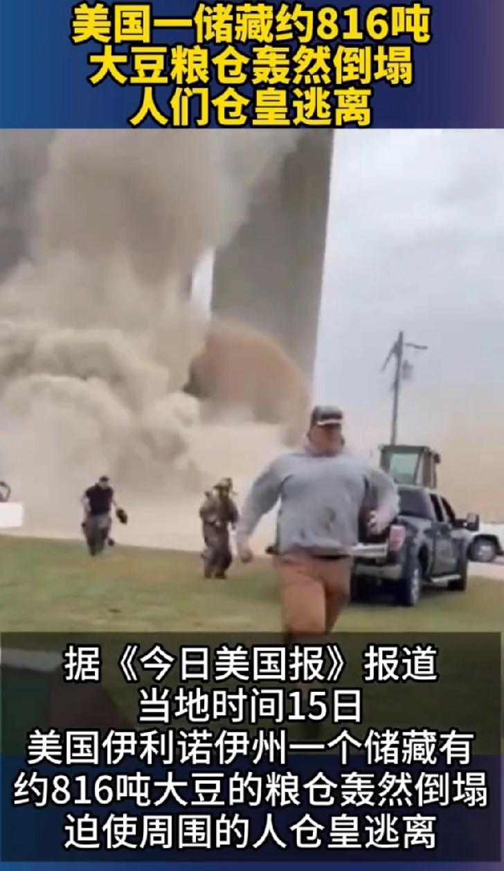 816吨大豆瞬间“决堤”! 美国粮仓轰然倒塌的背后 藏着农业强国的致命漏洞! 当地时间10月15日,伊利诺伊州27米高的粮仓突然坍塌,大豆喷涌而出卷起漫天尘埃,周边居民仓皇逃离,还砸坏了输电线路导致社区停电。更值得注意的是,事故前早已有人发现粮仓出现缝隙和结构性隆起,可隐患最终还是酿成了事故。 这绝不是单纯的设施老化问题,而是管理缺位的必然结果。作为大豆出口大国,美国一边让豆农因关税政策滞销愁眉不展,一边又忽视粮仓维护的基础保障,把粮食堆在“危房”里本身就是对农业的不负责。农业的根基从不是补贴和口号,而是每一个环节的严丝合缝。