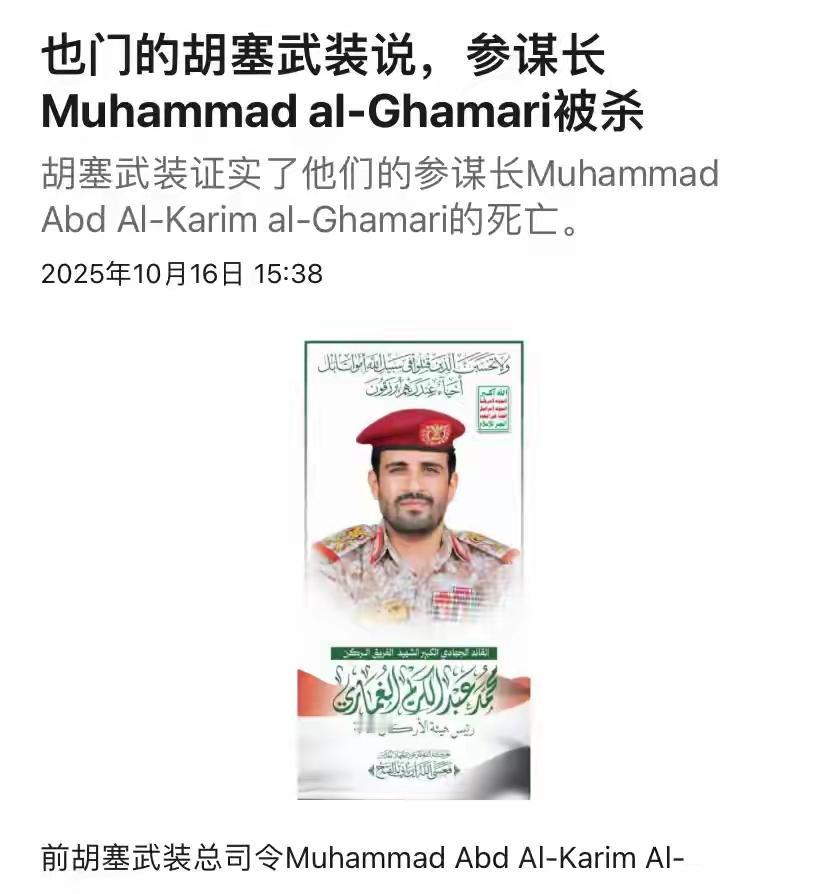 胡塞突然“收拳”不是服软 是指挥层被端后的无奈自保! 以色列这波“斩首”简直精准到可怕,8月底就用F-35战机带着钻地弹,把正在开庆功宴的胡塞高层一锅端,总参谋长加马里重伤后最终不治,连国防部长、政府总理在内的10多名核心人物也同步丧命。胡塞硬是捂了俩月才敢官宣,就是怕士气崩盘,毕竟加马里可是伊朗一手培养的“军事大脑”,连高超音速导弹的核心数据都由他直接对接伊朗。 再加上中美俄欧早就因胡塞袭击红海航运、阻碍人道主义援助实施一致制裁,靠山伊朗自身难保无力支援,胡塞彻底陷入“指挥断层+外援断绝”的绝境。所谓的“老实”,不过是失去核心战力后的战略收缩,而非真正放弃对抗。