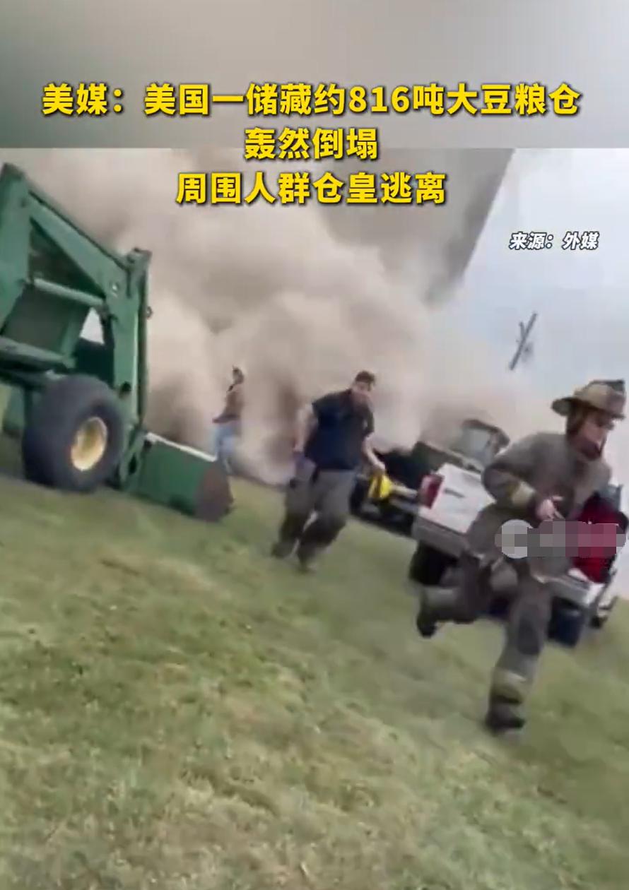 美国粮仓炸了!816 吨大豆喷成 "黄金海啸",300 万美金瞬间泡汤 美国伊利诺伊州出事了!10 月 15 日一声巨响,一座巨型粮仓突然垮塌,816 吨大豆像黄色洪流喷出来,尘土炸成蘑菇云,吓得周围人撒腿就跑。 这可是 30 辆大卡车的量,按市价算值 300 多万美元呢!倒塌的粮仓砸断了电线,周边 5 个社区全停电,附近饲料厂都停工了。有人说早看见仓壁裂了缝,可没人当回事。 美国公民哭诉,“我们把他选上台,他却让我们破产”,特朗普的关税“回旋镖”砸向自己人 要知道这儿六成粮仓都超期服役了,这只是开始吗?