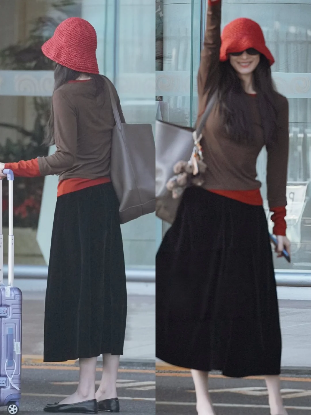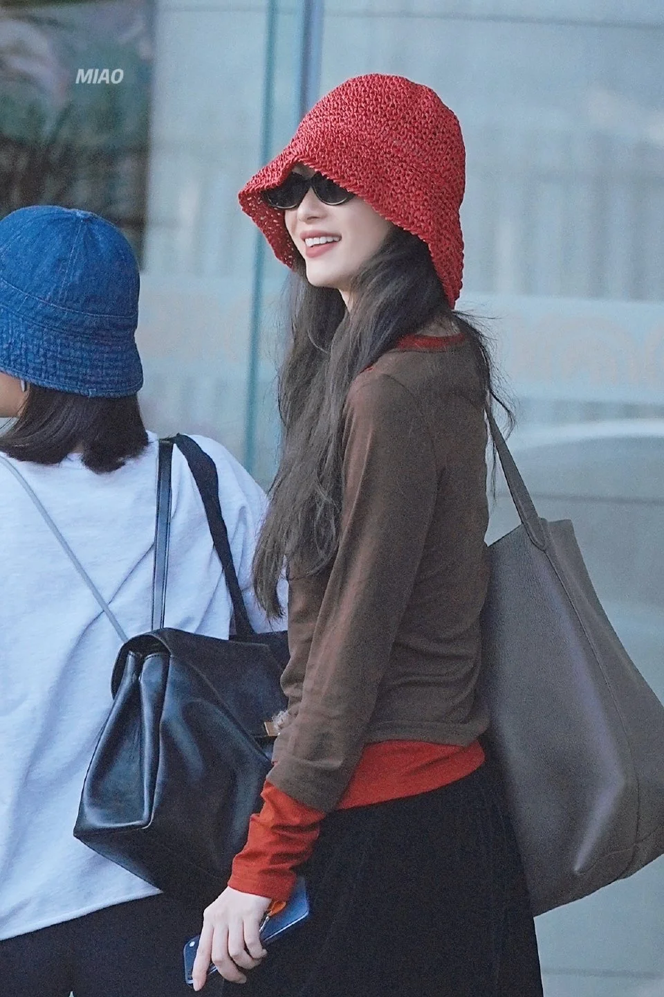 倪妮穿搭真的是每套都有自己的味道,丝绒裙和小红帽都被戳中🤩🍁