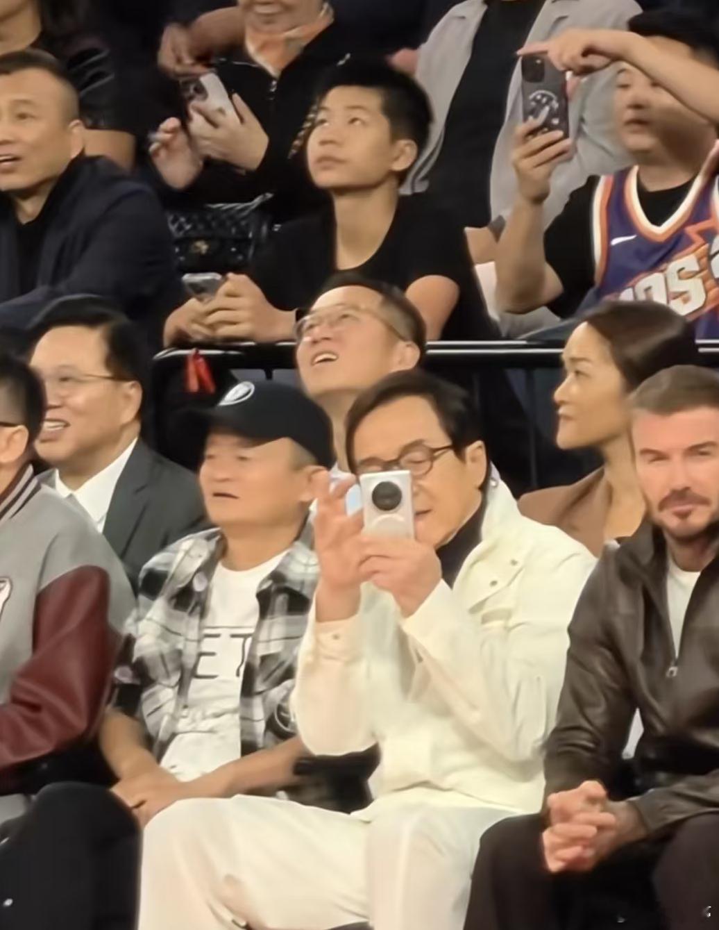 成龙和贝克汉姆用大折叠挑合照贝克汉姆和龙叔一起用荣耀MagicV5看合照,折叠大
