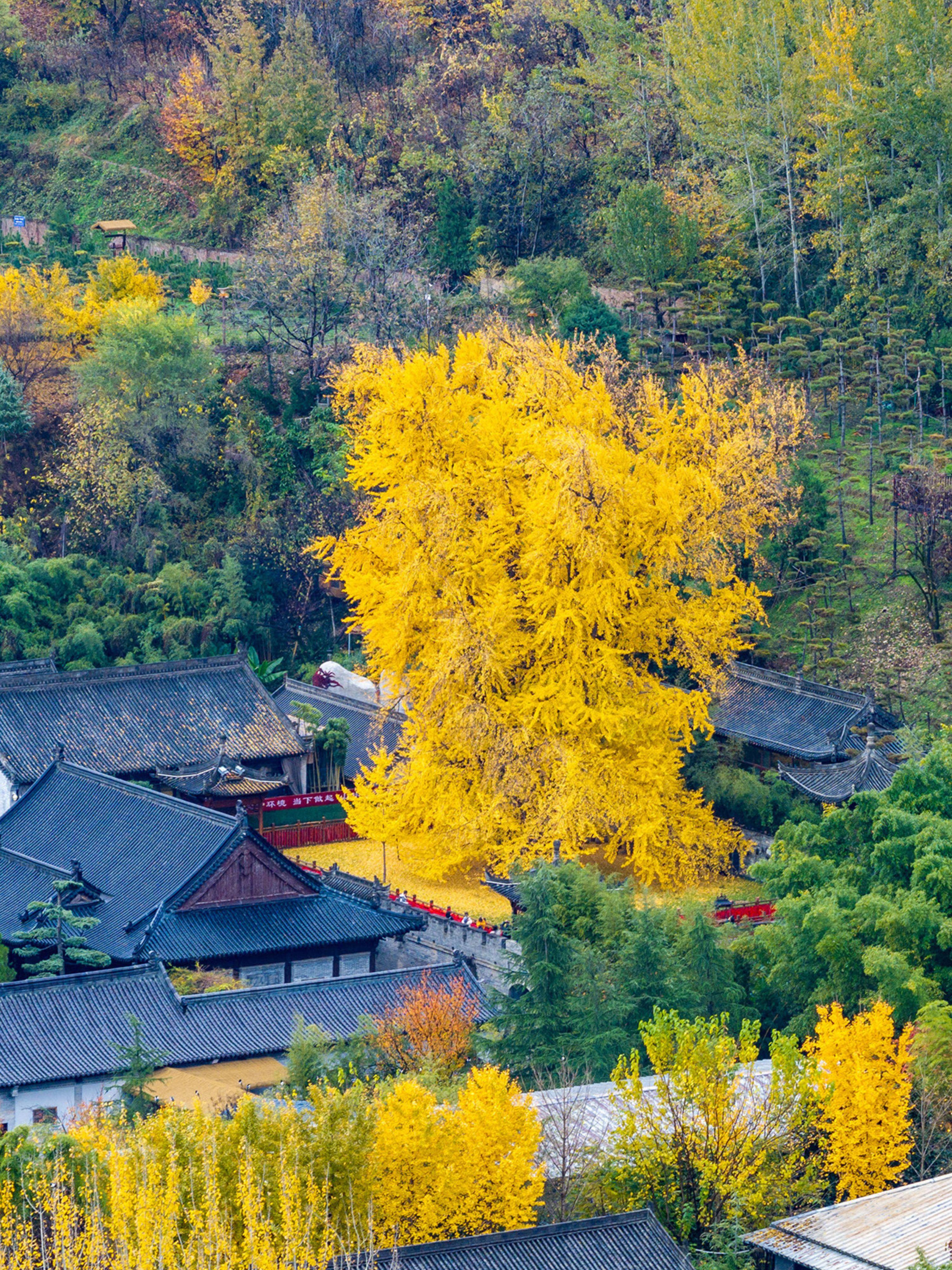 西安千年顶流银杏树📸李世民手植银杏黄了。🍁秋意渐浓,千年银杏树即将变黄,寺庙位于西安市长安区,寺内的千年银杏树是秋季观赏的热门景点~