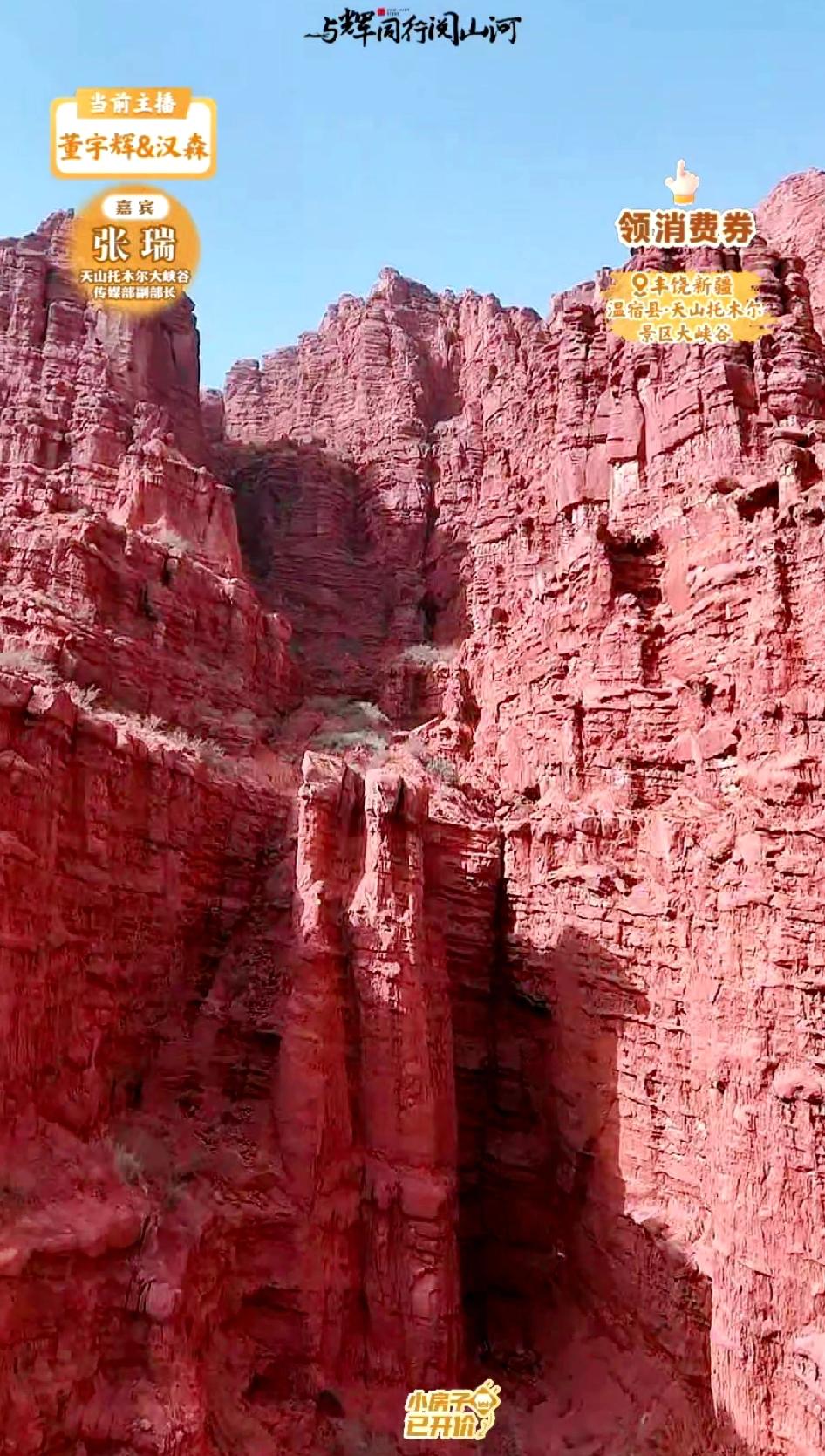你不得不承认一个事实,在外场直播方面,董宇辉的团队做得比老东家更加出色。 无论是拍摄设备的性能(信号的稳定性、清晰度),还是风景拍摄的手法,抑或是嘉宾的内容输出方面,董宇辉团队都做得更加专业化、更有观看吸引力、更具知识性和趣味性。 新疆,我6年前去过,对这种红层丹霞地貌印象很深刻,所以与辉同行这个直播画面的推送,在头条页面显得特别吸人眼球,我一下就注意到。 刚好前段时间也刷到了俞敏洪团队在新疆的直播,不由自主地做了一个观感的对比。