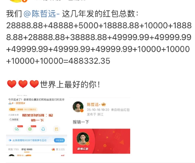 《一笑随歌》收官,陈哲远又发红包了,有网友总结了他这几年发的红包数额,加起来已经48万多,确实很大方,基本上只要有他的剧播出,他就会给粉丝发红包。