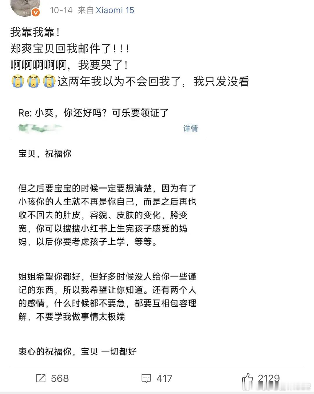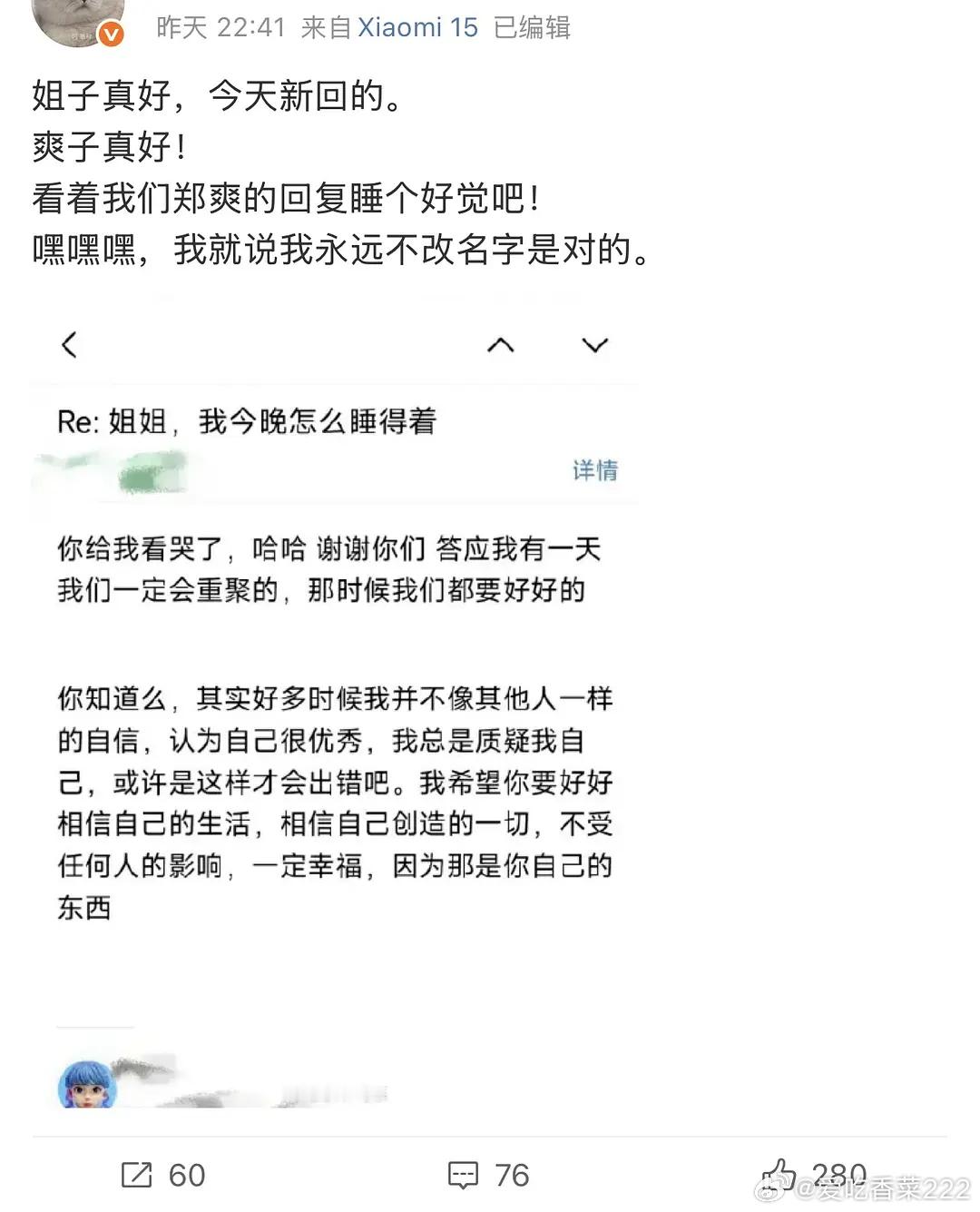粉丝晒爽子暖心回复贴心叮嘱粉丝并且说还会重聚