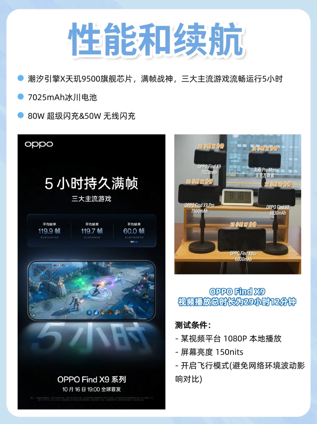 天玑 9500 芯片+潮汐引擎,放眼整个小屏机市场,7000毫安的手机不多,OPPO Find X9有7025mAh大电池,支持80W超级闪充+50W无线闪充,重度使用可以撑一天