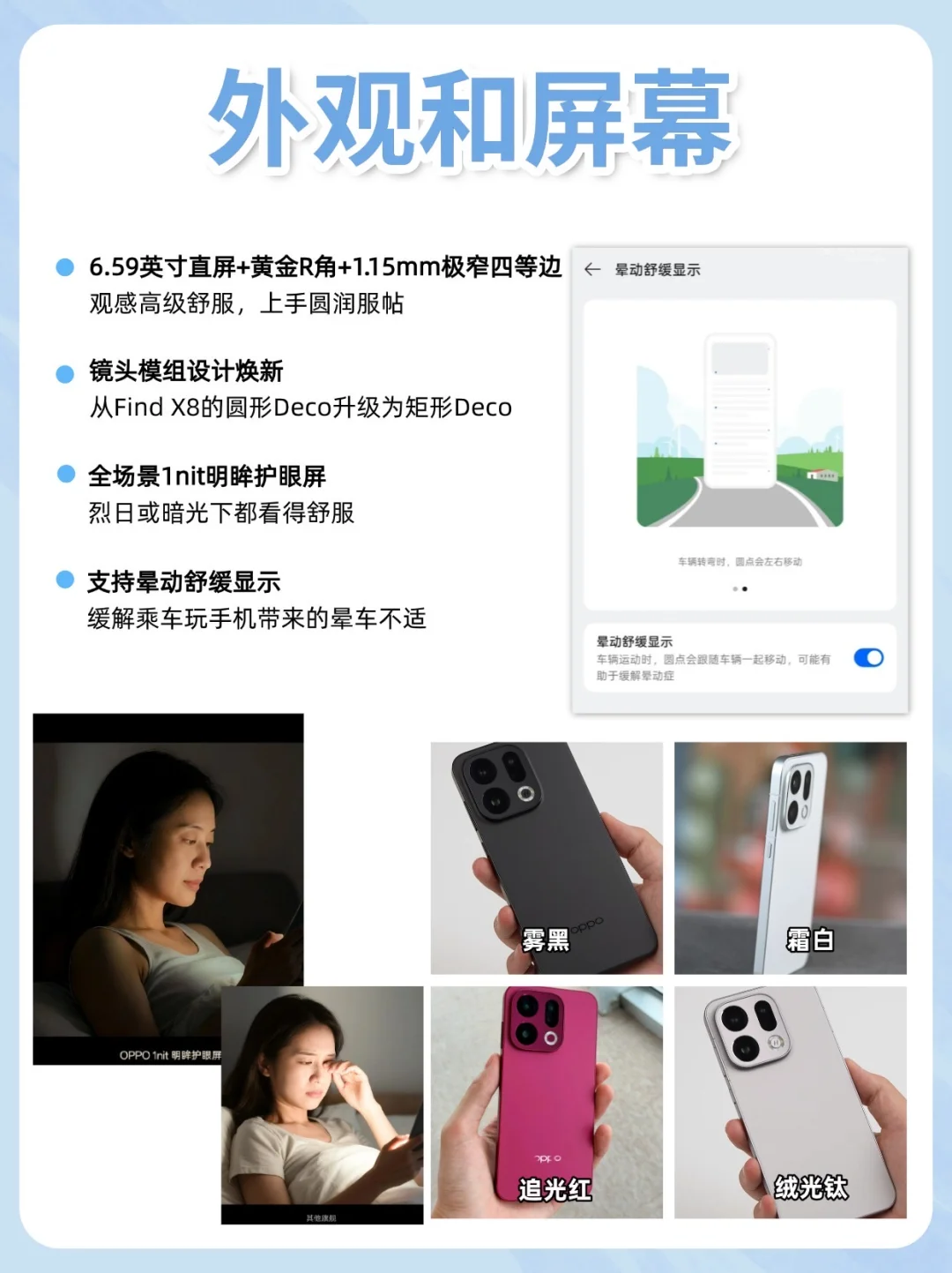 全场景真1nit明眸护眼屏,不管浏览哪个APP,都能保持1nit低亮度,晚上刷短视频不用担心屏幕刺眼