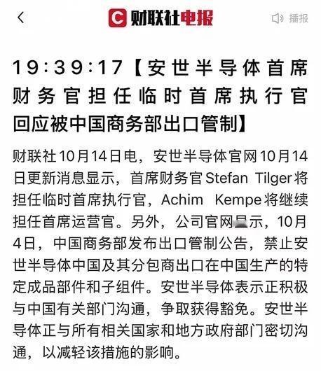 知道中国的厉害了吧?中国刚一出手反击,安世半导体就跪了!真是早知今日,何必当初。10月14日,中国商务部发布出口管制公告,禁止安世半导体中国及其分包商出口在中国生产的特定成品部件和子组件。消息刚一公布,安世半导体即发表声明,表示正积极与中国有关部门沟通,争取获得豁免。 哎,这事儿说起来还真让人觉得荷兰人这次是自己找不自在。安世半导体这家公司,本来是荷兰本土企业,专做功率半导体,全球市场份额不小,每年出货上千亿件芯片,主要供应汽车和消费电子这些领域。可它被中国闻泰科技控股后,荷兰政府突然觉得不对劲,就在2025年9月底下手了,直接冻结了公司全球30多家子公司的资产,还禁止随便动知识产权和人事调整。理由呢?说是为了经济安全,怕关键技术外流到中国去。结果呢,中国商务部10月4日就发布了出口管制公告,直奔安世中国及其分包商而去,禁止他们把在中国生产的特定成品部件和子组件出口出去。这下子,安世半导体立马就慌了,10月14日赶紧发声明,说正在和中国相关部门沟通,争取豁免。听听这语气,哪还有刚才的硬气劲儿?早干嘛去了,非得先动手惹事儿。 话说回来,这事儿得从荷兰的举动说起。荷兰经济事务与气候政策部9月30日发了部长令,冻结安世的所有权和投票权,还派了个独立管理员监督董事会。10月1日,公司三名高管被解职,包括中方首席执行官张学正。10月7日,荷兰企业法庭开庭,判决暂停中方董事职务,任命前NXP高管古多·迪里克进董事会,首席财务官斯特凡·蒂尔格临时接管。荷兰政府一口咬定,这不是美国逼的,而是公司内部治理有缺陷,威胁到欧洲关键技术供应。可谁信啊?安世的母公司闻泰科技早在2024年12月就被美国扔进实体清单,指它帮中国政府搞敏感半导体制造。2025年9月29日,美国商务部又扩大清单,涵盖控股50%以上的子公司。荷兰这时候跳出来,摆明了是给美国当马前卒,借着“经济安全”名义抢中资资产。金融时报报道说,这次冻结的中资资产价值高达147亿欧元,够狠的。 安世半导体对中国市场依赖多深?上半年营收里,中国区就占了48%,欧洲才第二。产能呢?中国工厂,尤其是上海临港和东莞基地,占了全球70%到80%。上海临港是他们最大最先进的晶圆厂,产能和产值至少35%。德国工厂主要做高端,但整体产量远比不上中国这边。没了这些出口,中国生产的功率二极管、晶体管模块这些玩意儿就卡在那儿了。安世自己也承认,启动了危机应对机制,全力和中国沟通。可豁免哪那么好拿?中国商务部这公告一出,等于掐住了他们的命根子。全球20%的成熟芯片靠安世供应,现在供应链一断,欧洲汽车厂得头疼了。 这不是头一回了,荷兰人好像总忘不了历史教训。回想三百多年前,1624年荷兰东印度公司占了台湾南部,建了热兰遮城堡,强征当地人干活,仓库里塞满从大陆运来的货物。郑成功呢,1624年出生在日本平户,父亲郑芝龙是海上贸易大佬。他从小跟着船队闯荡,1644年明亡后,就在福建抗清,率水师截清军补给。1661年,他集250艘战船、2.5万兵力,从金门出发,东征台湾。舰队先在澎湖避风,4月登陆鹿耳门,荷兰守军从城墙上开炮阻击。郑成功部队分路推进,5月拿下普罗民遮城,9月围赤嵌,九个月后,1662年2月热兰遮城堡投降。荷兰总督揆一举白旗,士兵列队交武器,撤出岛屿。郑成功收复台湾,引进汉人开发,立下大功。这仗打得干净利落,荷兰人灰头土脸地滚蛋了。 再往前推,七十多年前的朝鲜战争,荷兰也没讨到好。1950年,荷兰派了819名官兵,包括一艘驱逐舰,加入联合国军。1951年1月,第四次战役中,他们的范·霍茨团在战场上行军,遇上中国人民志愿军先遣营。志愿军隐蔽接近,突然发起攻击,20分钟内歼灭荷兰军765人,只剩几十人逃掉。荷兰官方数据是阵亡111人、负伤589人、失踪4人,总损失704人。这仗让荷兰人吃够苦头,事后藏了60年不敢公布,直到2013年才慢慢揭晓。志愿军用小米加步枪,靠地形和夜战,教训了这些所谓“精锐”。荷兰人那时候就该明白,逞强没好果子吃。 现在呢,荷兰还想重蹈覆辙?他们以为中国好欺负,在美国面前刷存在感,结果碰上硬茬子。安世事件一出,荷兰其他企业在中国投资的那些事儿,也得掂量掂量了。阿斯麦,光刻机巨头,在中国市场份额大,供应链离不开稀土和部件。飞利浦,医疗和家电,在上海有组装线,苏州有器械厂。壳牌,能源项目多,和中石化合资石化厂,北京有润滑油基地。联合利华,消费品工厂散布广州等地。马士基,物流港口装卸。中国对荷兰投资300多亿美元,荷兰对中国也差不多。 中国商务部这反制,逻辑清楚:你管我企业,我限你产品。不是简单报复,而是维护市场原则和企业权益。荷兰一口否认美国压力,可证据摆在那儿,美国实体清单一扩,荷兰就动。闻泰科技13日发声明,聘律师上诉,准备向欧洲法院走程序。可上诉有用吗?供应链这东西,断了就难接。