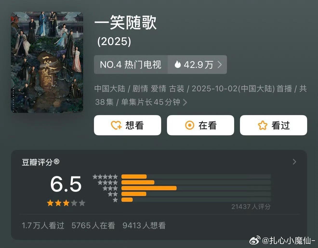 《一笑随歌》豆瓣开分6.5,2.1w人评分,高了or低了?[思考]