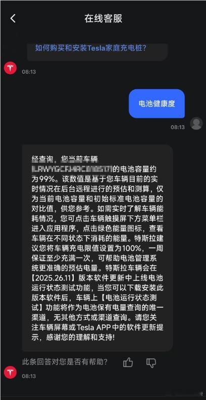 特斯拉更新Tesla App,用户可在“服务”中查看电池健康:进入车机“软件”界面,长按“Model 3/Y”图标三秒,输入“SERVICE”进入维修模式,屏幕显示“Battery Health”;点击“Health Test”可重校电池,需电量低于50%并连接充电器,测试最长24小时,仅限特斯拉4S店附近,具体百分比需联系在线客服。官方保修:Model 3/Y及长续航/性能版8年或16/19.2万公里、Model S/X 8年或24万公里内,非人为衰减超30%可免费换电池。