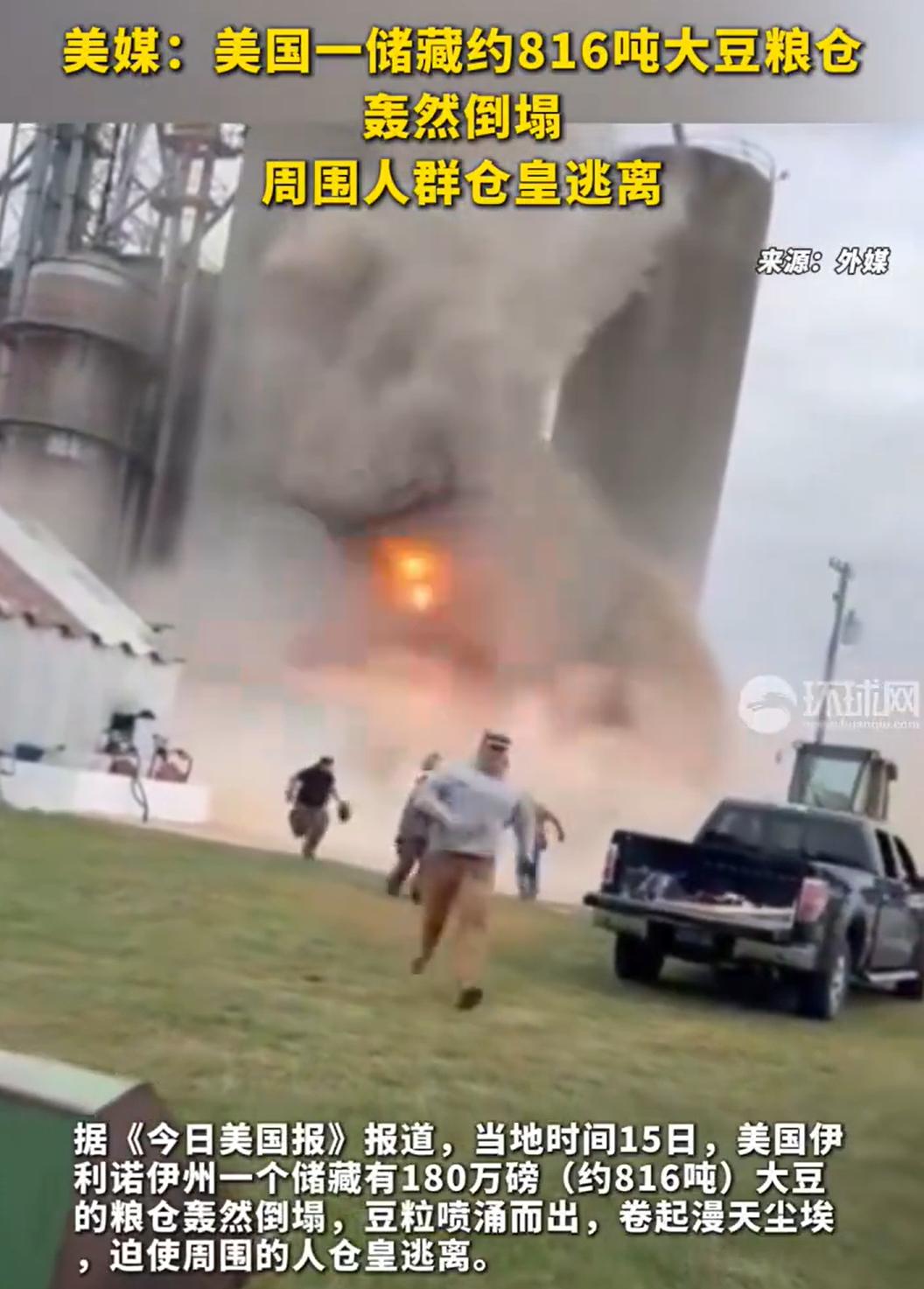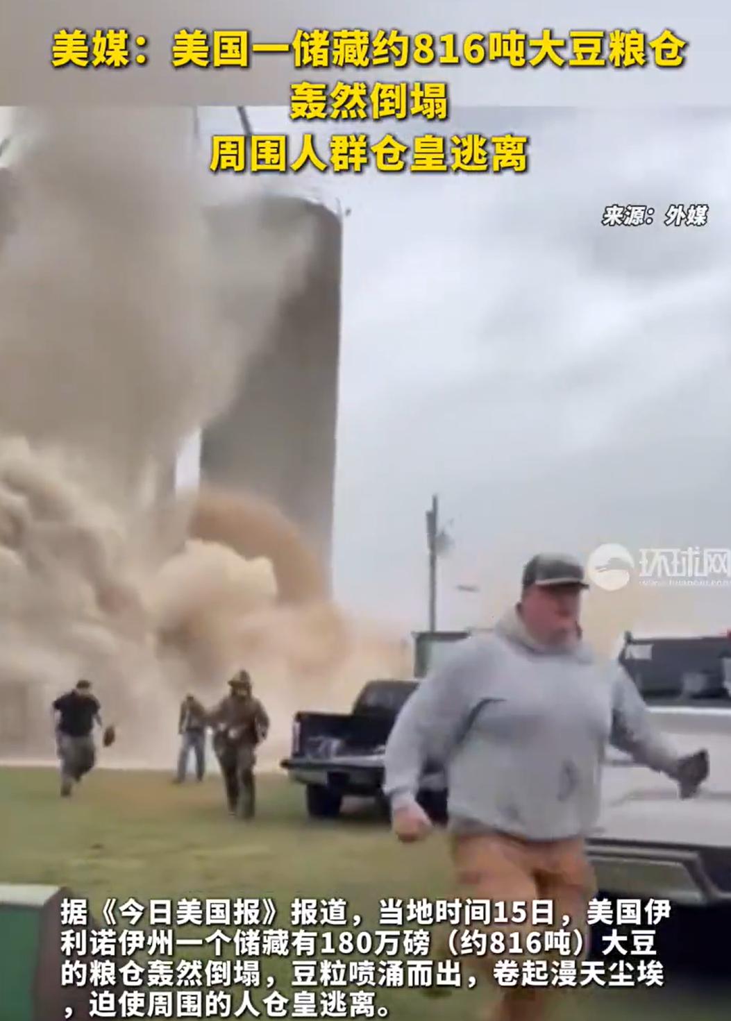 坏消息,美国800吨的粮仓塌了。 好消息,没有人员伤亡。 坏消息,粮仓存的大豆,都糟践了。 好消息,不用再为卖不出发愁了。 有网友看到这个消息,还不忘嘲讽一句,“为啥要存,卖掉不就好了”。 哈哈哈哈哈。 老美也想卖了,可是全世界都找不到买家。至于为什么没有买家,美国人自己心里最清楚。 另外,注意图一中的火光,那是两次粮仓倒塌的时候,砸到了电线,所以,当地社区也因此停电了。