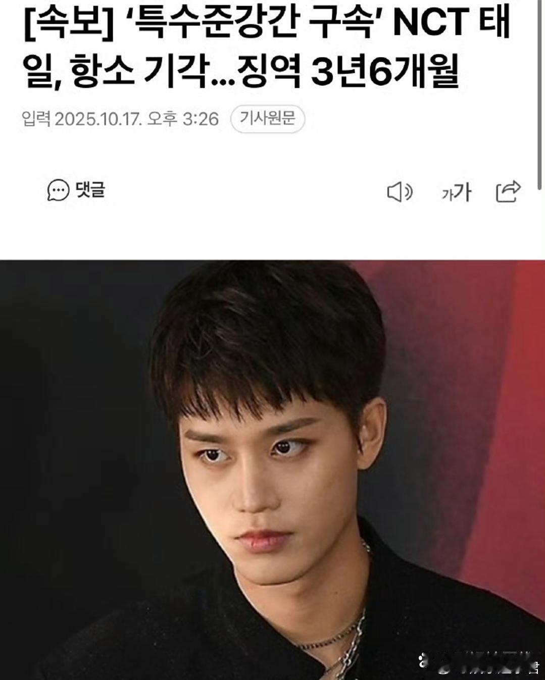 据韩媒17日报道,因“特殊准强奸罪”被拘捕的前NCT成员文泰一二审上诉被驳回,维持原判,被判处有期徒刑3年6个月。