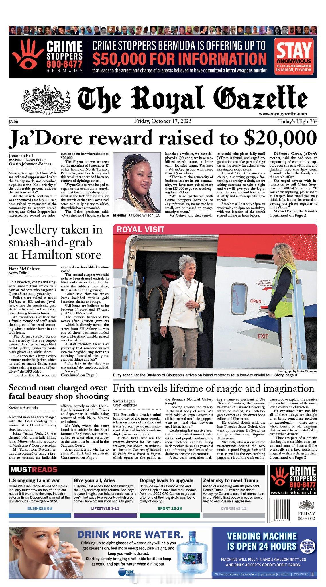 7️⃣9️⃣岁格洛斯特公爵夫人比尔吉特访问百慕大消息已被刊登在百慕大当地报纸头条📰