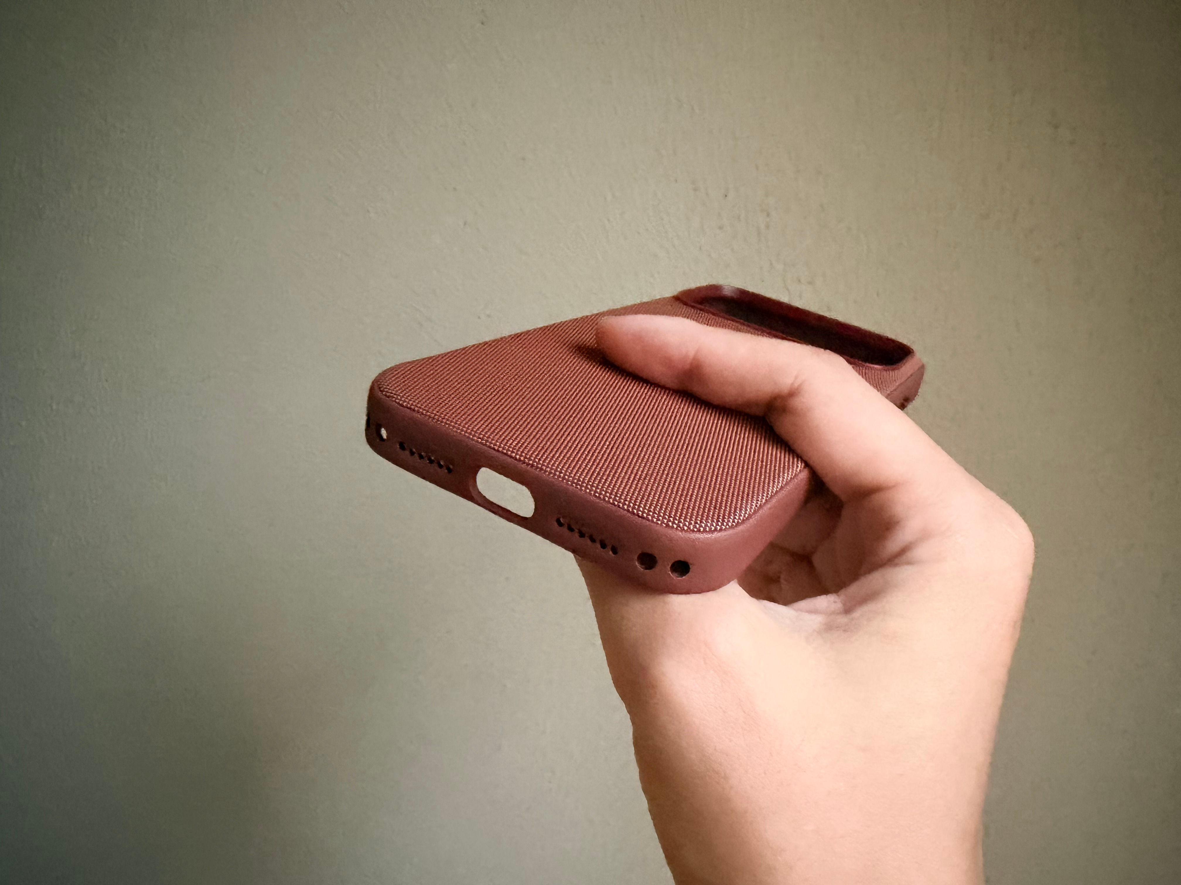 华强北的 iPhone 17 科技织物手机壳,拿货价50-60 ,一般网上要卖70 左右了。我个人是觉得比 15 那款精织斜纹耐用很多,跟官方比起来似乎侧边略厚一丢丢,但触感差不多。