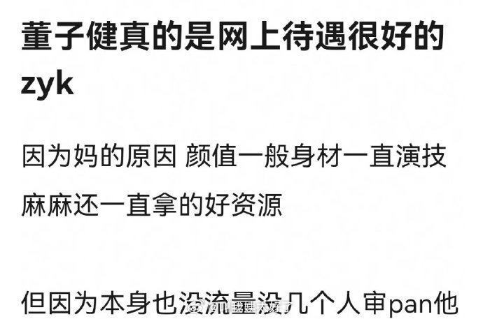 有网友说董子健真的是网上待遇很好的zyk了,颜值、身材、演技一般,还一直拿的好资