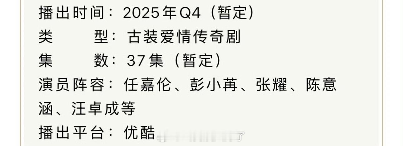 任嘉伦、彭小苒的《凤凰台上》开始招商了,暂定Q4播出,大家压扑还是爆?