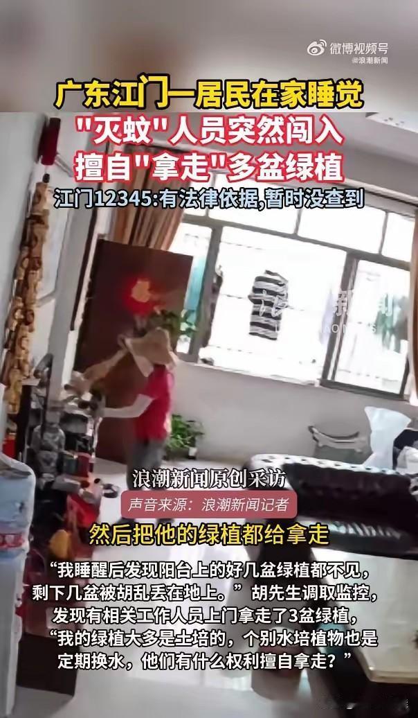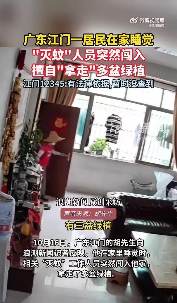 一觉醒来,胡先生家阳台天塌了。 不是被大风刮跑,也不是被小偷偷走,而是灭蚊工作人员直接推门进屋,端走三盆绿植,剩下的胡乱扔在地上。 胡先生睡觉时根本没听见动静,醒来只看到一地狼藉。他打电话投诉,对方说行为有法律依据,但具体哪一条,暂时查不到。 灭蚊固然重要,但推开家门的手如果连法律依据都亮不明白,那砸在地上的不只是花盆,还有人心。