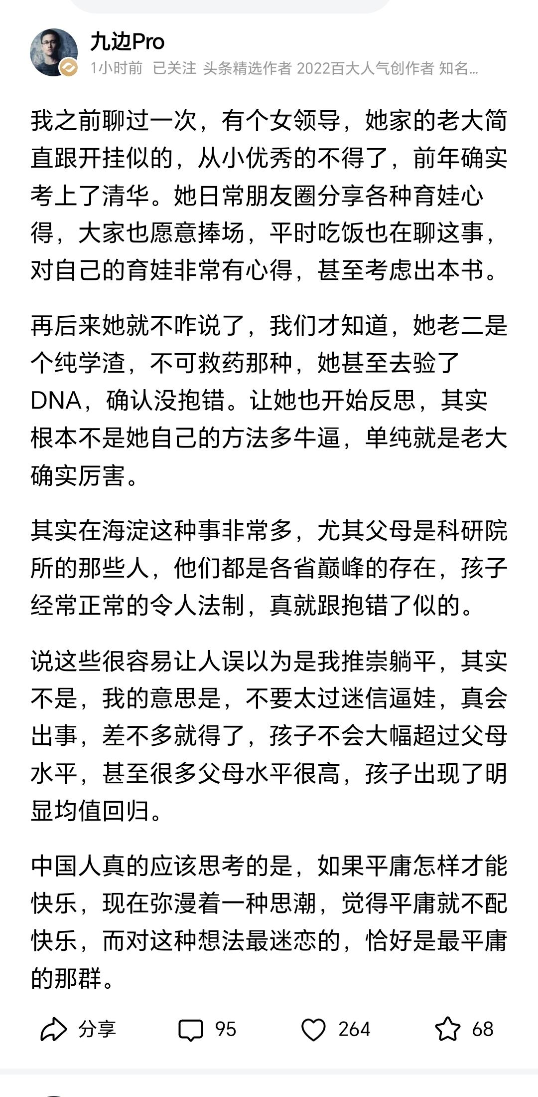 看了九边的两篇文章,说的有道理,事实也是如此。 也许能缓解我们部分家长的焦虑,但仍然解决不了根本问题。 绝大部分普通人的愿望一是子女比自己好,二是比别家的好。 不患寡而患不均,这就是人性! 谁不想做个豁达的人, 谁不想让孩子快乐一些! 但快乐之后呢? 快乐教育 为什么要努力学习,为什么要读书 学习