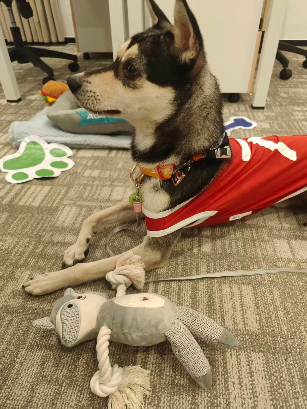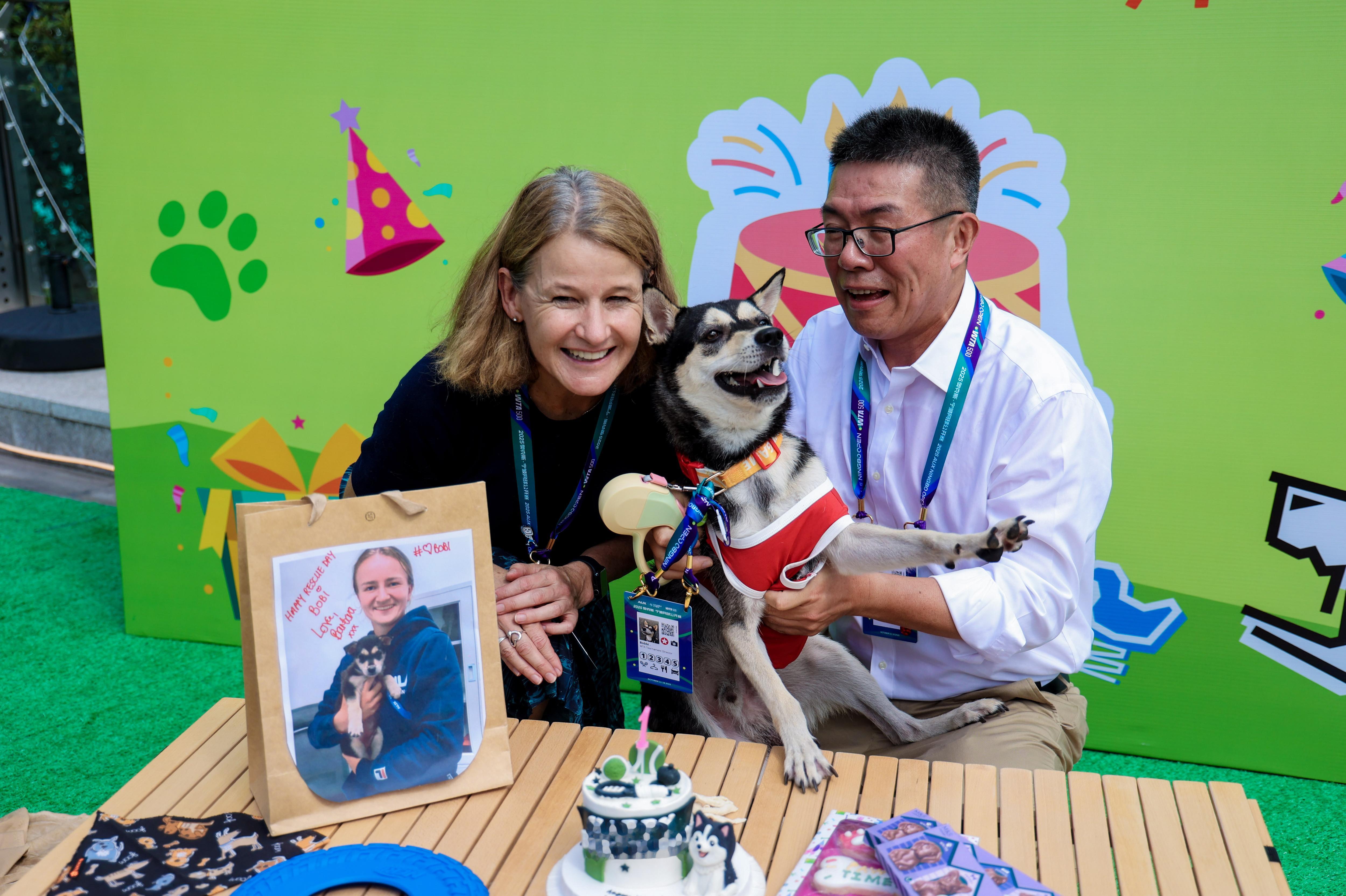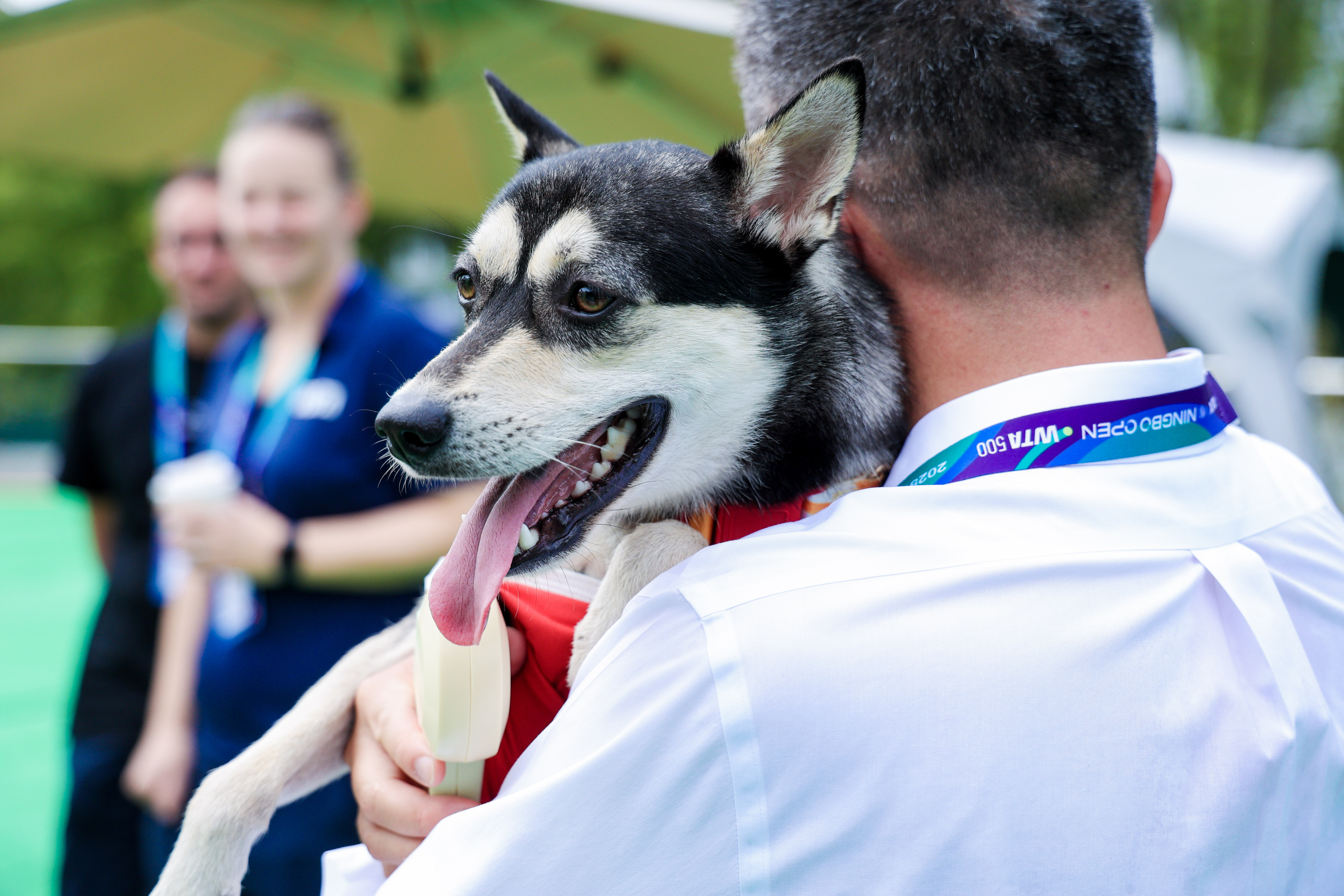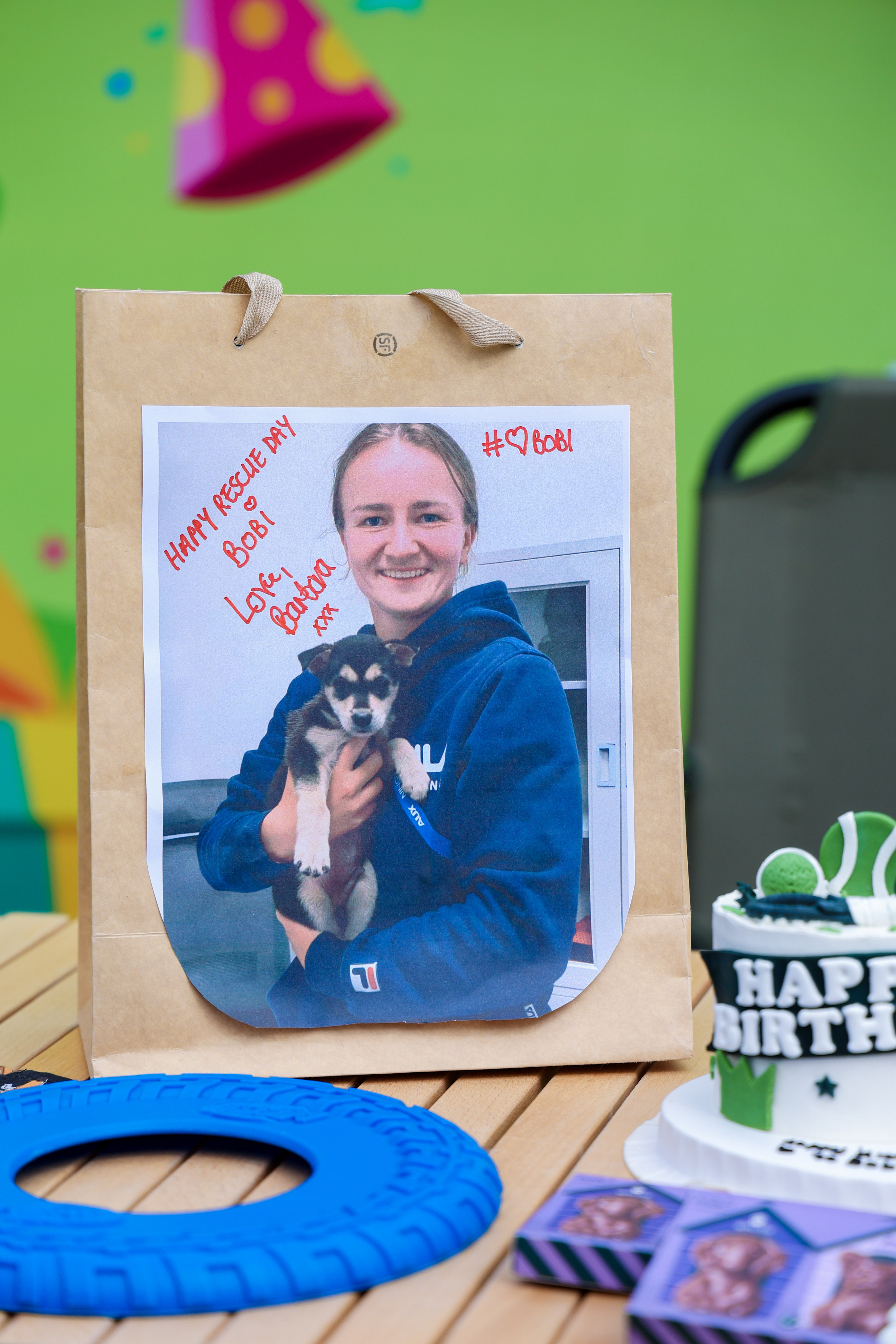 今天是小狗波比的生日,它就是去年的今天获得救助的。上午赛事为它举办了生日会,小波比生日快乐!