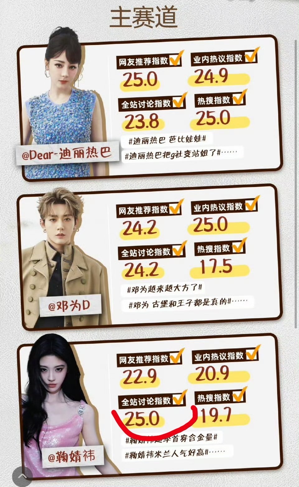 时装周最亮眼艺人前三名鞠婧祎这个全站讨论指数是最高的