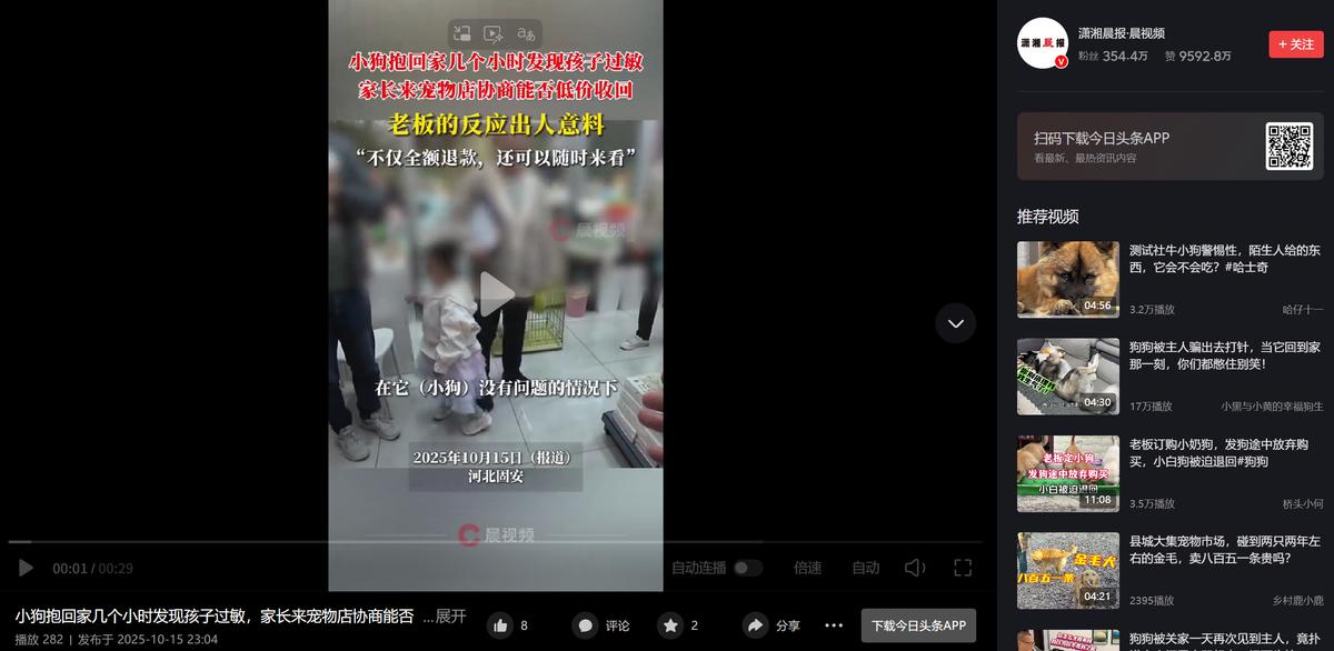 “这样的老板想不发财都难!”河北固安,发现孩子对宠物狗过敏,家长带着刚买不久的宠
