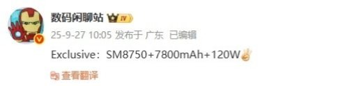 博主 数码闲聊站 上个月曾爆料某厂骁龙 8 至尊版新机(SM8750)搭载 7800mAh 电池 + 120W 有线快充,评论区网友推测为一加 Ace6。