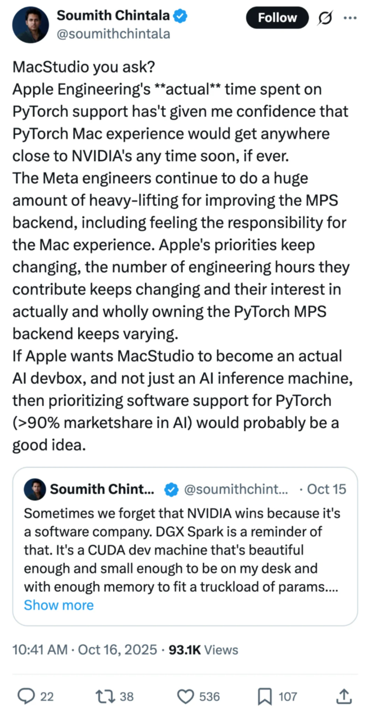 PyTorch 核心维护者直言:苹果在PyTorch支持上的投入几乎可以忽略,Meta工程师反而帮着修MPS后端,苹果自己的优先级却一变再变。