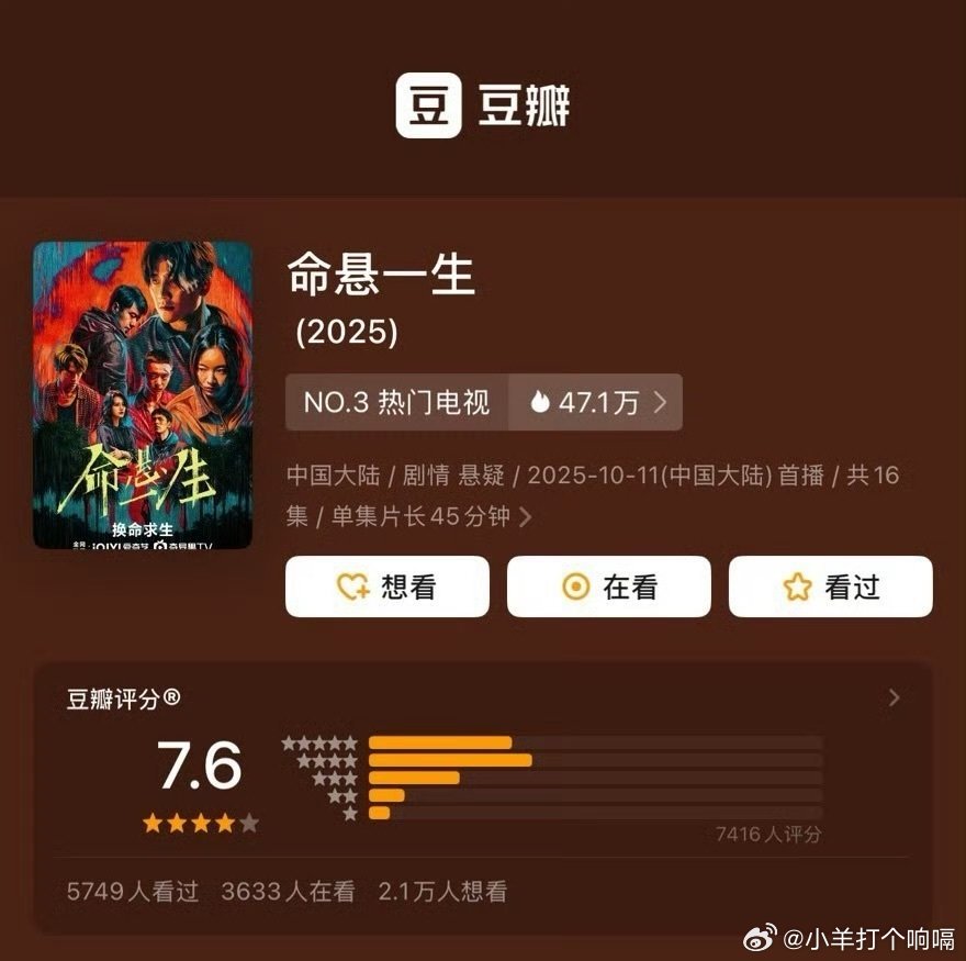 命悬一生2024年来迷雾剧场最高分电视剧命悬一生 其实命悬一生还挺让人上头的,节奏加快,一个一个的线索让人死心被牵动着嘞