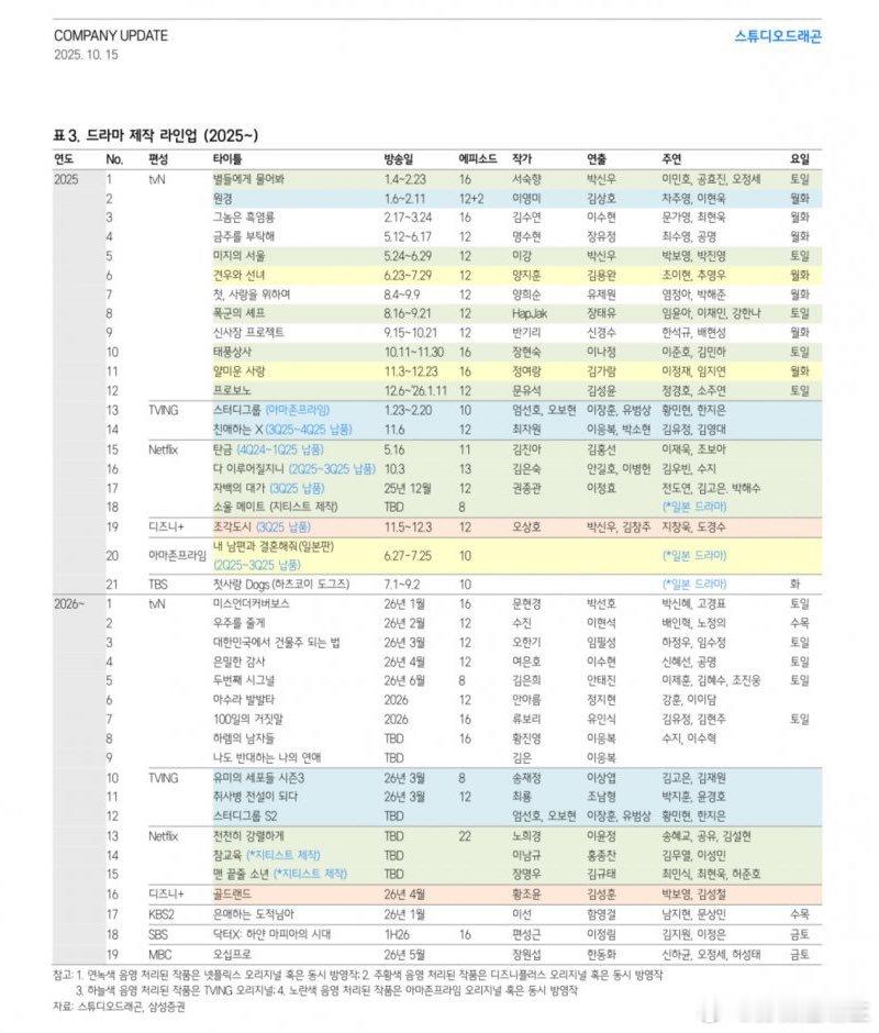 根据这个Studio Dragon 公司更新电视剧制作阵容的编成表来看~