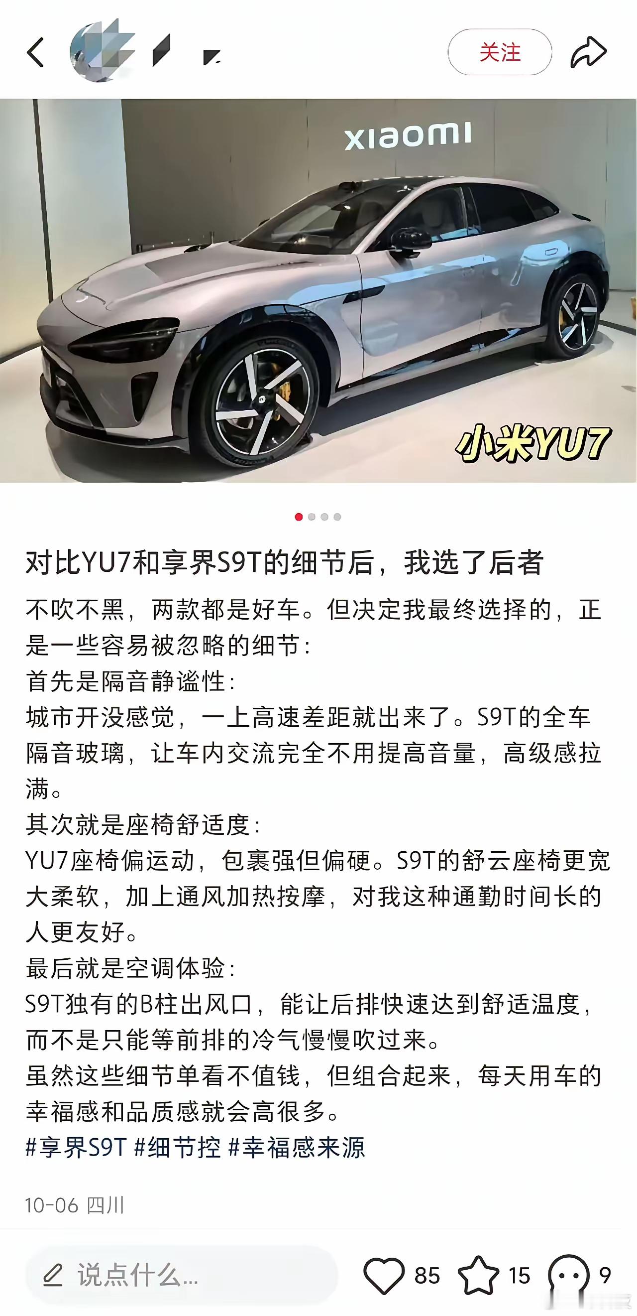 现在怎么都统一的从 小米Yu7 转单到享界的S9t