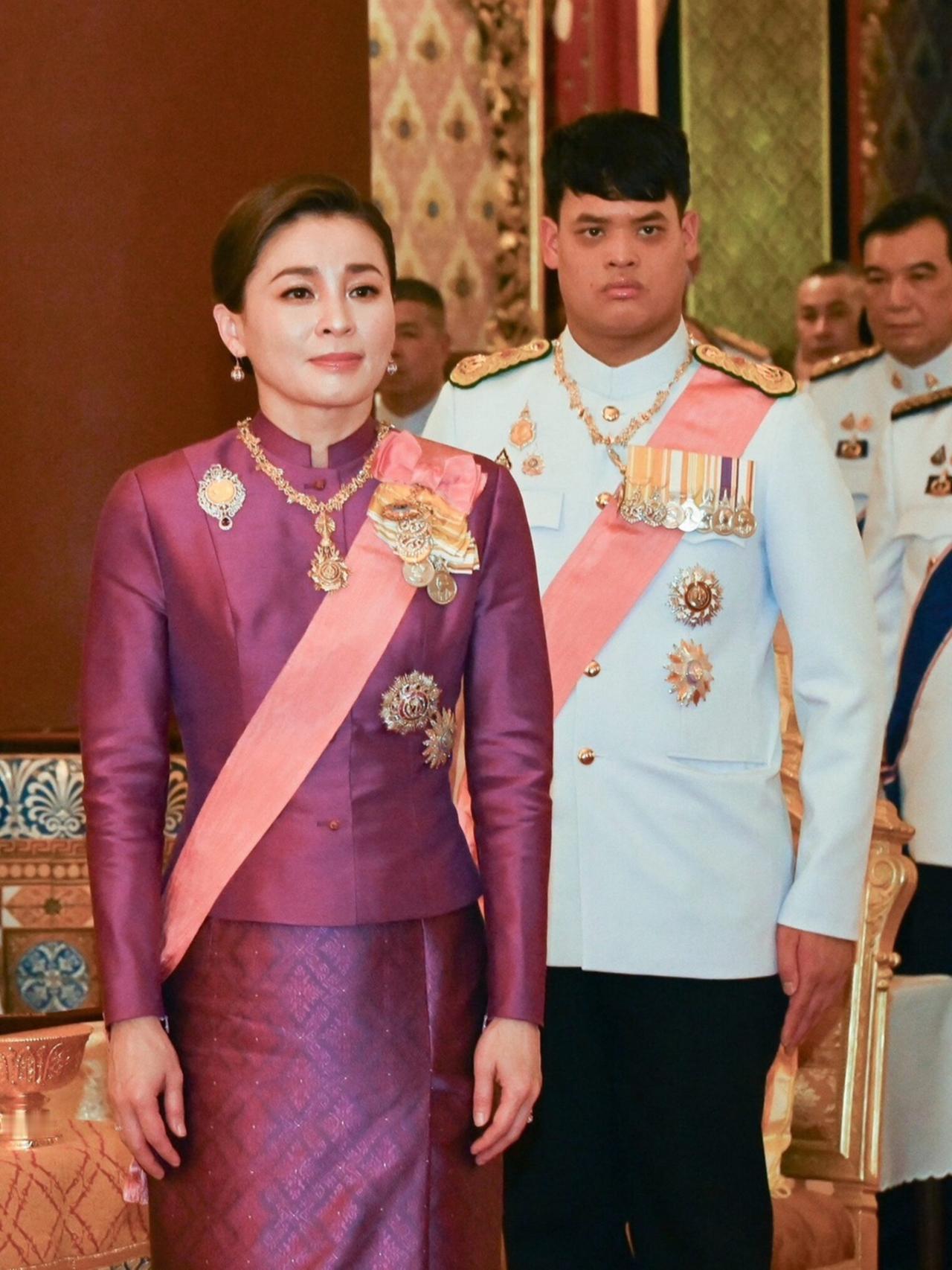 欧拉弄换上正宫红礼服,跟苏提达同框比美 在泰国王室最新公务照中,欧拉弄一改往日军装形象,以大红色礼服惊艳亮相,与苏提达王后同框比美。她近年受泰王偏爱,地位攀升,此次换装更显其野心与受宠程度。