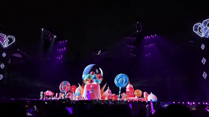汪苏泷重庆演唱会现场人超多,满场都是荧光棒晃来晃去。 他唱了《有点甜》《不分