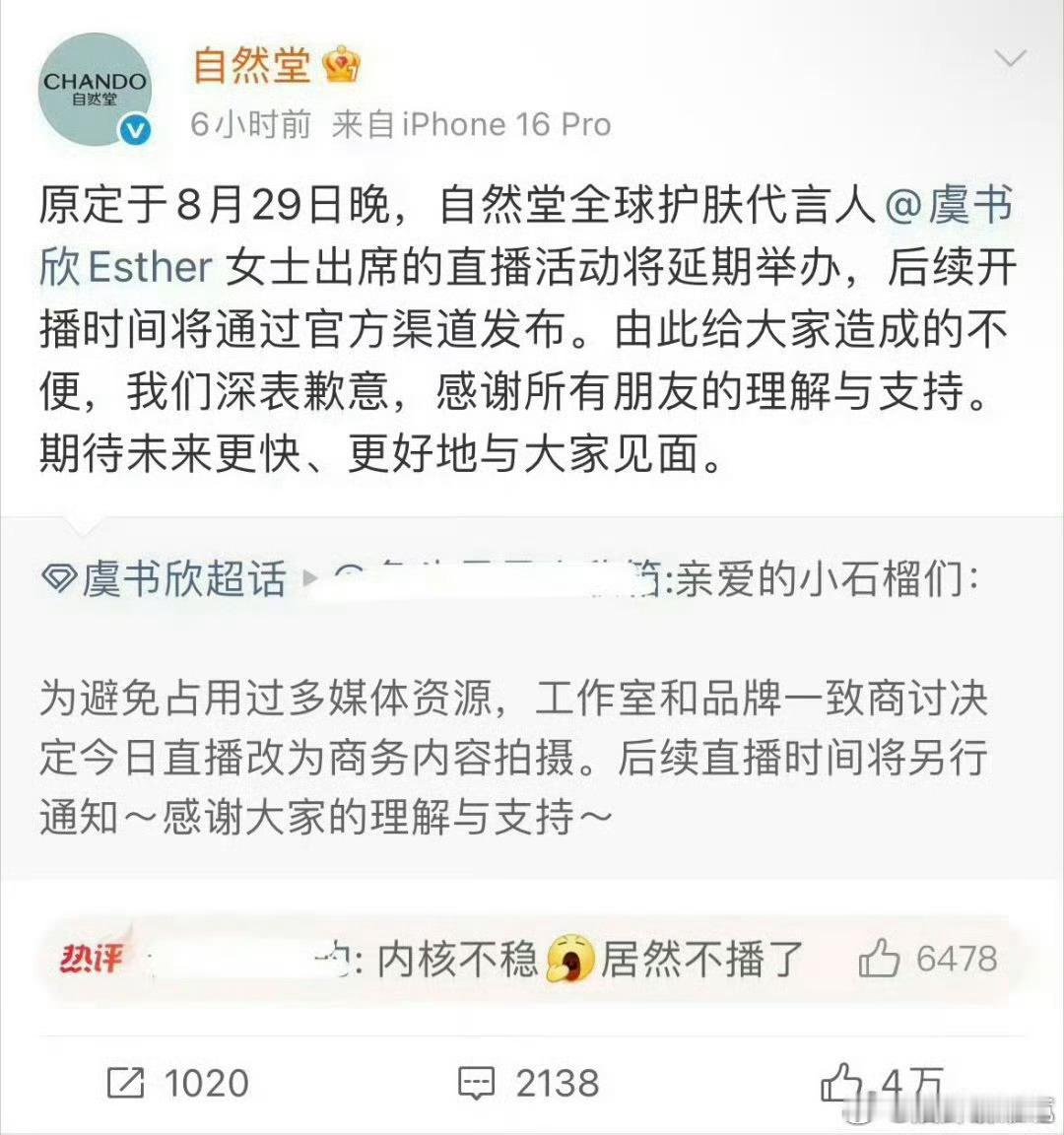 谁能懂啊!虞书欣这阵仗也太离谱了——娱乐[超话]高位热搜挂着就算了,粉丝还在眼睁睁看着掉粉,之前定好的直播说取消就取消,品牌方那边物料也悄没声儿不发了,连海外行程都直接鸽了,新剧开机更是一推再推!
