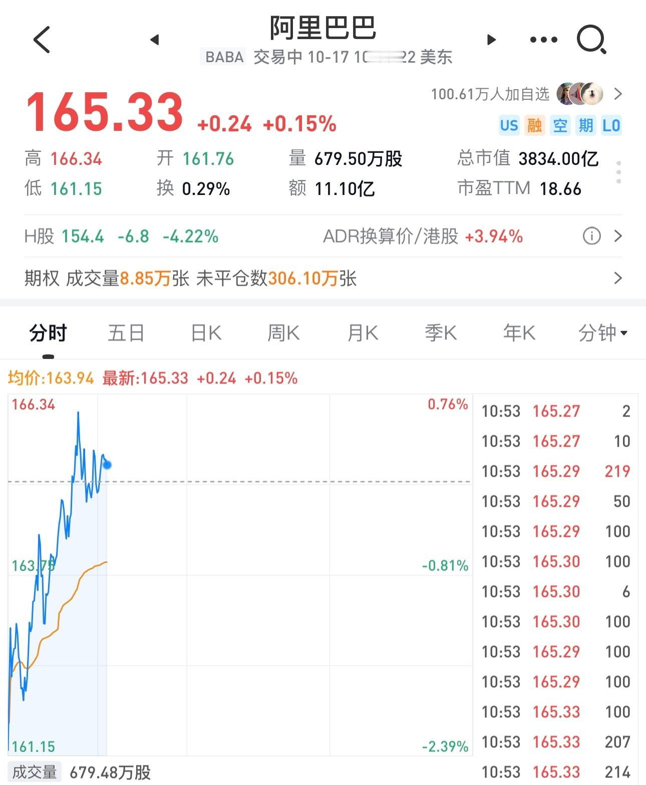 美股阿里巴巴股价红了,白天港股阿里巴巴股价白跌4%了,下周一补回来。