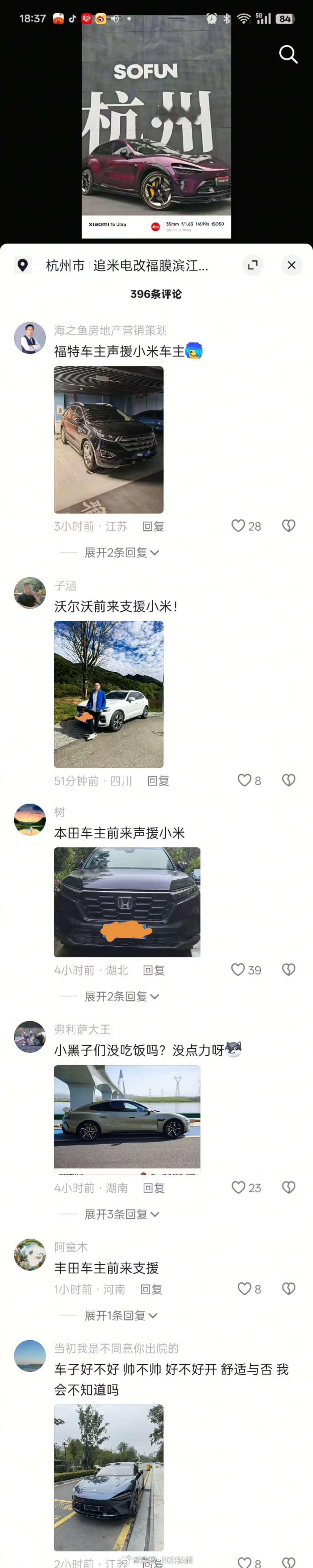 看到一张其它品牌车主都出来声援的图,一方面说明小米现在的舆论环境确实非常恶劣,有