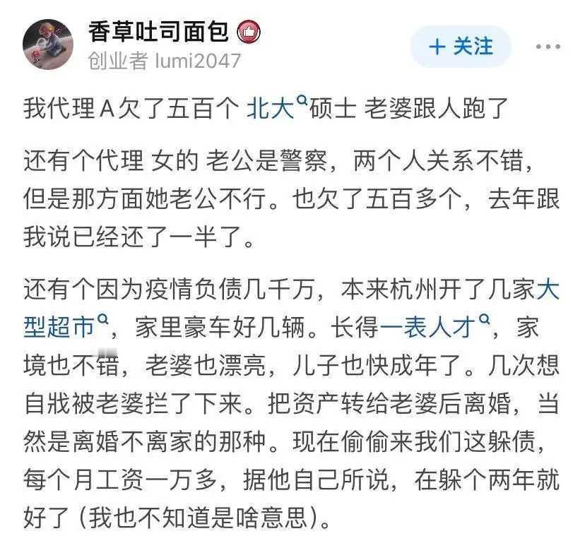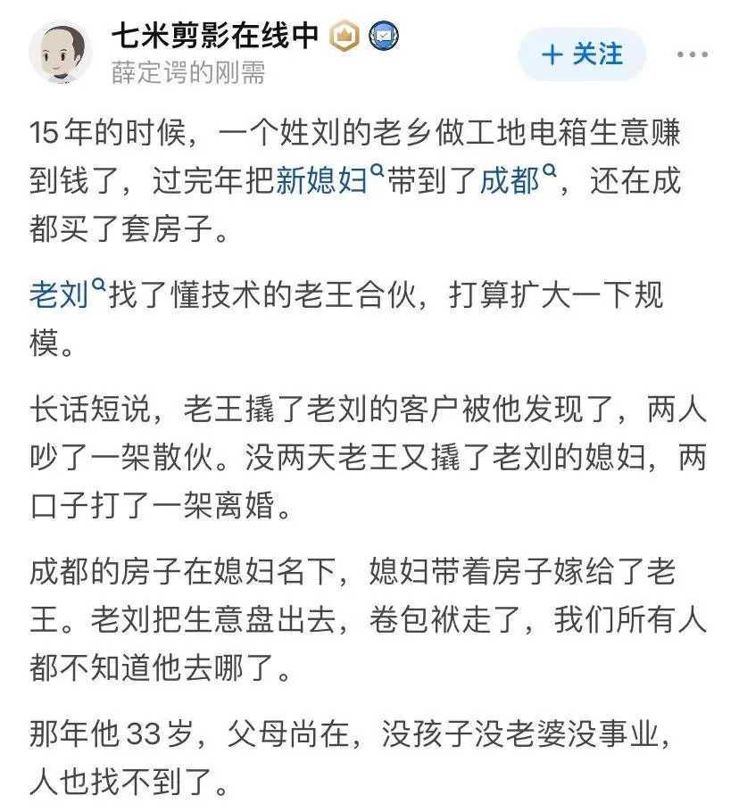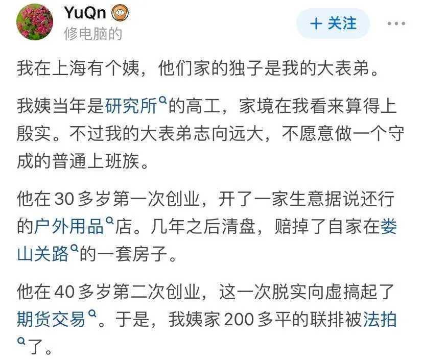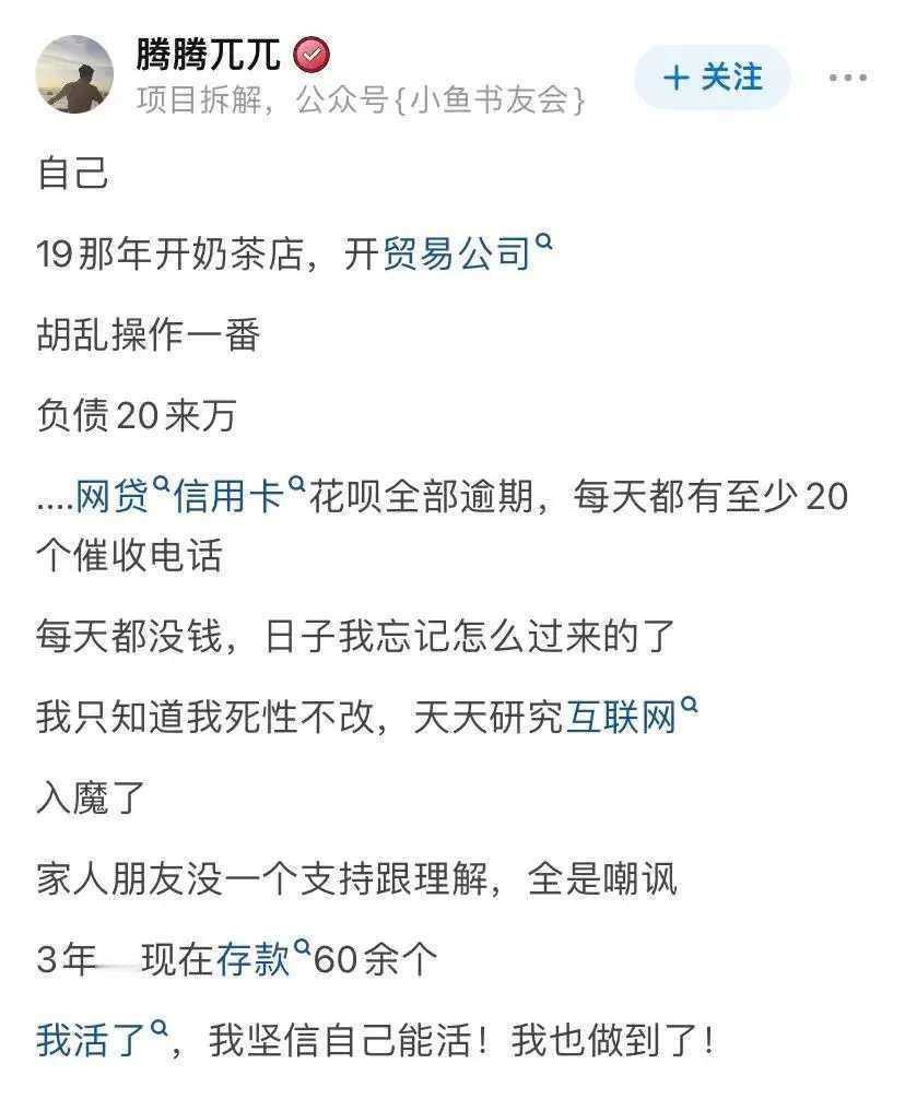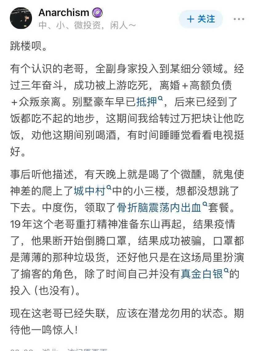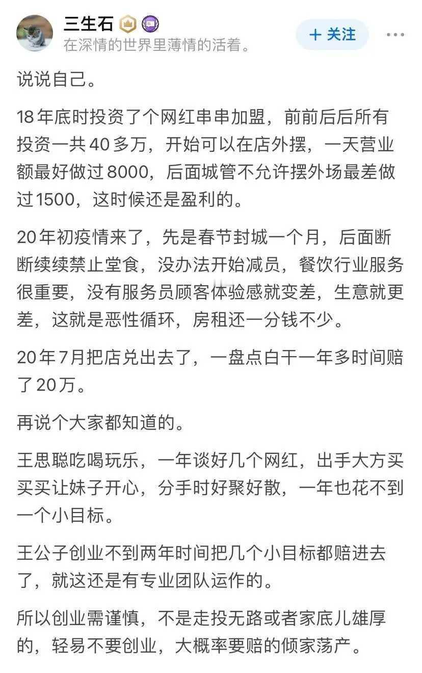 “曾经在武汉有九套房,创业开设计公司后,一套没剩。”近日,“你身边有创业失败很惨的人吗”话题在社交平台引发热议,上千名网友分享亲身经历,有人从稳定国企辞职后赔光积蓄,有人囤货遇疫情血本无归,也有人负债几十万后靠跑美团、烤面筋重新站起,字里行间的血泪与挣扎,戳中无数人的心。 “别拿稳定换‘赌徒式’创业,我用20万买了教训。”一位网友回忆,自己曾是国企员工,手握旁人羡慕的“铁饭碗”,却总觉得“日子太安逸”。2019年不顾家人反对辞职,先加盟餐饮品牌,后合伙开汽车美容店,没摸清行业规律就盲目投入,不到两年赔光20多万积蓄。“最惨时不敢回家,怕看到老婆孩子的眼神,最后在夜市支起烤面筋摊,凌晨三点收摊,早上六点备料,才慢慢把日子拉回来。”如今他拒绝所有“创业机会”,守着小摊子,“小钱不断、家庭和睦,比啥都强”。 有人栽在“贪心”,有人输在“心软”。做粮食贸易的网友透露,自己曾囤了大批玉米,想着年底涨价赚一笔,却因忽视保存条件导致粮食发霉,加上“拉不下脸在磅上做手脚”,一年直接亏损18万。“同行说我‘心太软’,不懂得‘灵活变通’,可我要是真那么做了,夜里都睡不安稳。”他感慨,“创业不是比谁狠,是我既没算好风险,又高估了自己的能力,认输不丢人。” 疫情成了不少创业者的“意外暴击”。一位网友的朋友瞄准高端礼品市场,年前推出海鲜大礼包,首批货靠送礼需求快速售罄,眼看利润可观,又砸钱囤货、定制更高端的包装盒,想趁春节再赚一波。没曾想疫情突然爆发,物流停运、礼品市场遇冷,囤下的海鲜变质,定制的包装盒堆成小山,“从‘准赢家’变成‘负债者’,只用了半个月”。 并非所有故事都是悲剧。有网友分享老板的经历:搞农业时负债七八百万,连饭都吃不起,偶然接触老鼠外贸行业,靠着老外客户先付的货款“起死回生”,三年时间还清债务彻底翻身;还有人负债22万后,一边跑美团外卖,一边做月入一千多的小生意,七个多月还了4万多,“每天累得沾床就睡,但知道每一分钱都在还债,心里踏实”。 “创业像走钢丝,该冒进时要敢闯,该保守时别硬撑。”一位曾在地产行业摸爬滚打九年、2017年组队创业的网友总结,自己经历过2019年的高峰,也扛过口罩三年的低谷,“有时手握3万预算,吃饭只花2000;有时兜里只剩1万,却得咬牙投5万。”他坦言,创业没有固定公式,“不看你有多努力,只看结果能不能活下来,但没有一次次试错的过程,也不会有后来的‘活着’”。 话题下,更多人留下清醒的感悟:“没钱别创业,更别借钱贷款创业,失败了最多清零,别让自己负债累累”“稳定的工作不是‘苟且’,是给家人的保障”“创业不是‘赌一把’,是算清楚风险后的决定”。这些带着温度与痛感的分享,没有鸡汤,只有真实,或许正是对“要不要创业”最实在的回答。