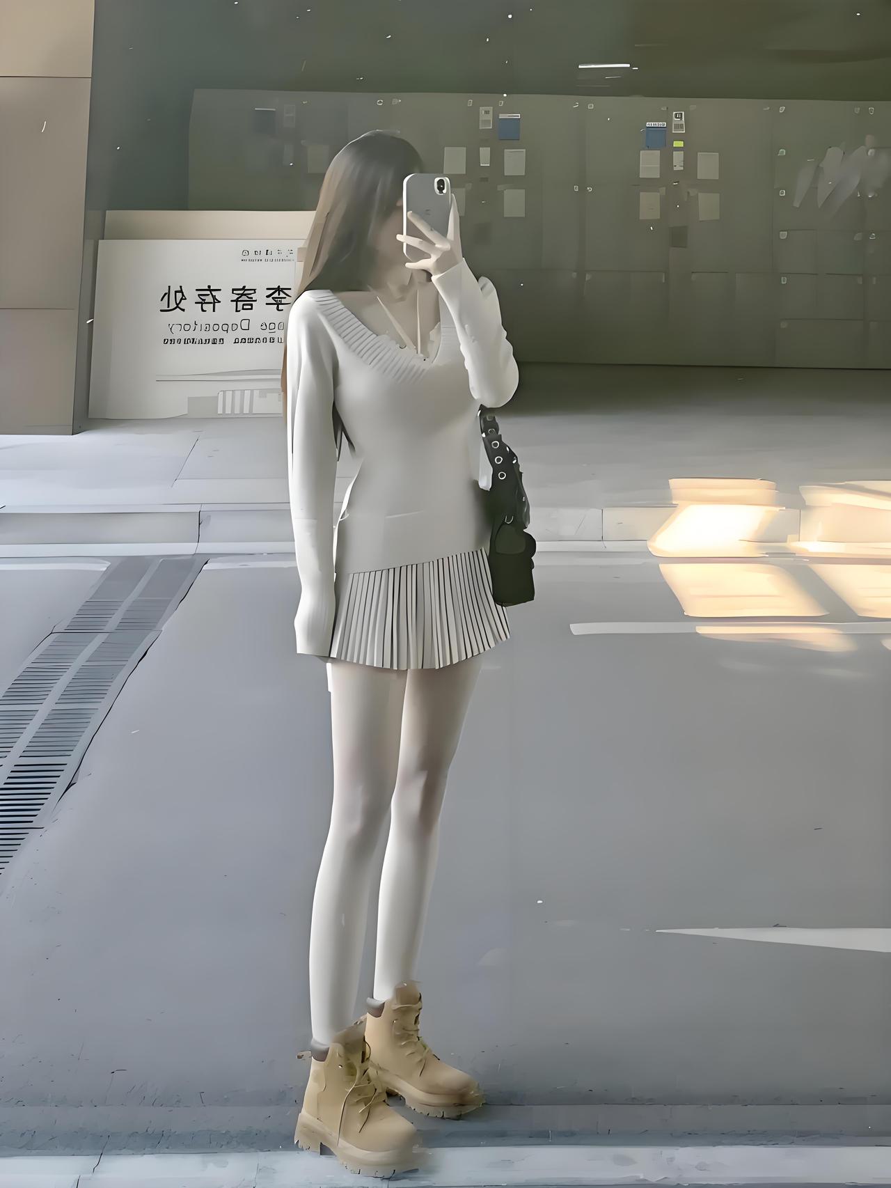 米色毛衣裙搭配米色百褶裙和丝袜,这搭配简直绝了!米色毛衣裙自带温柔感,贴在身上软糯糯的。配上米色百褶裙,层次感一下就有了,百褶裙的灵动给整体造型添了份俏皮。再加上丝袜,既保暖又能让腿部线条更流畅,既甜美又时尚。穿搭 好身材性感女神