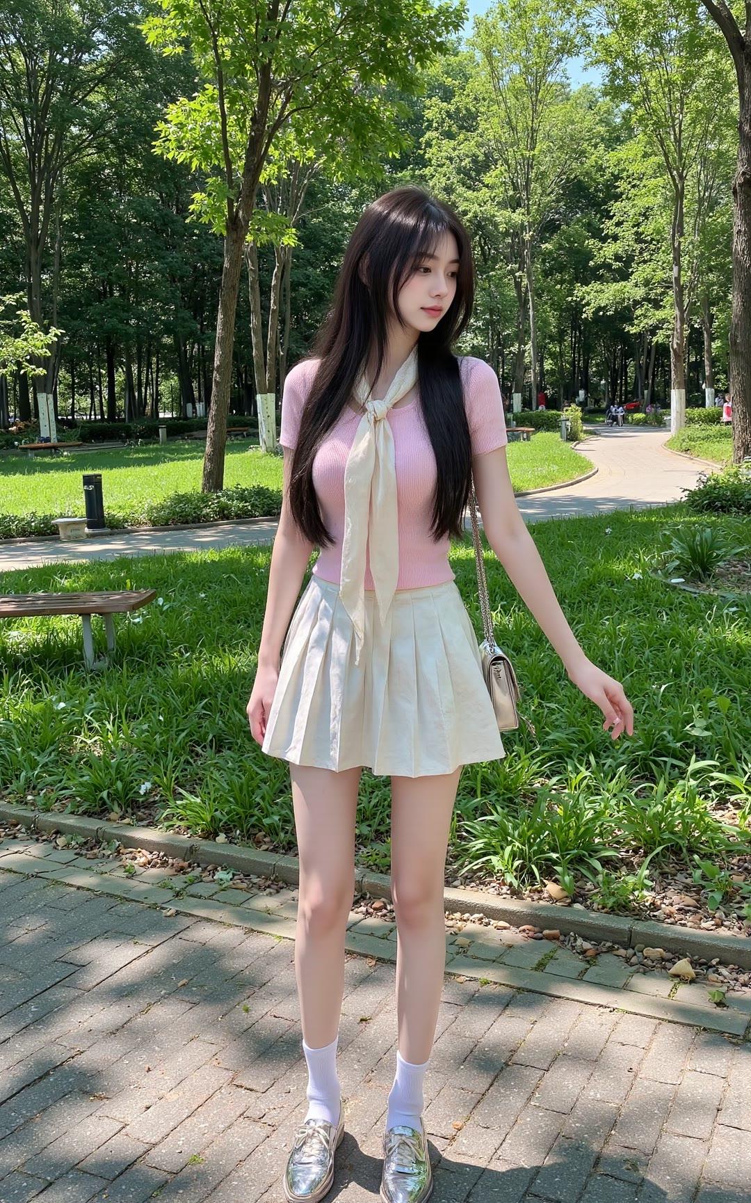 粉色T恤搭配百褶裙简直绝了,是甜美少女风的标配。白色百褶裙和粉色T恤搭配堪称完美,白色能轻松衬托出粉色的柔美。穿上它,再配一双平底鞋,甜美的少女气息直接拉满。穿搭 粉系少女感穿搭 温柔粉色穿搭 性感