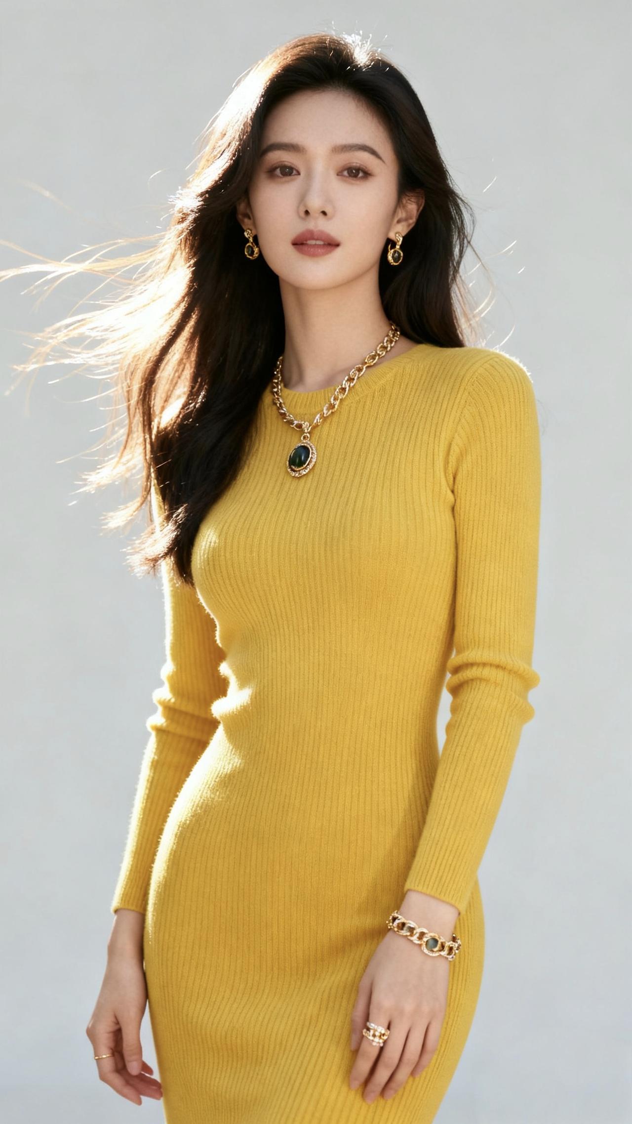 《明黄邂逅湛蓝,演绎冬日时尚高级感》 当温暖明黄的针织裙撞上澄澈湛蓝背景,瞬间定格高级时尚画面。修身裙型勾勒曼妙曲线,复古珠宝点缀尽显贵气,发丝在光影中轻舞,每一处都在诠释:时尚从不是随波逐流,而是以色彩为笔,以质感为墨,在冬日画布上书写独属自己的优雅篇章,这般敢穿敢美的姿态,尽显女性魅力锋芒。