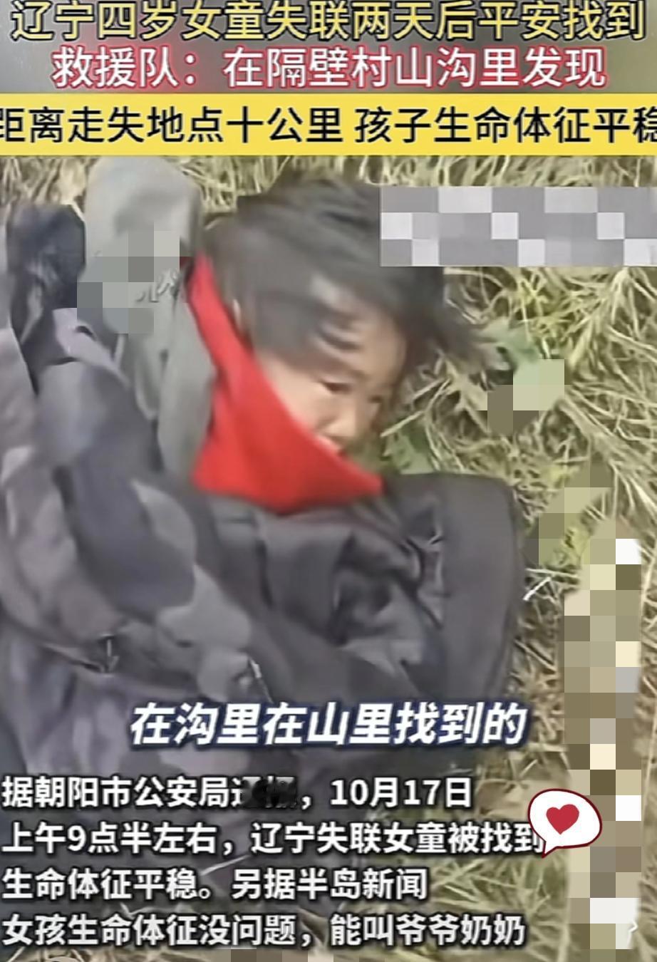 辽宁失踪40多小时的4岁女孩,找到了! 据知情人说,孩子在离车4公里沟里的洞