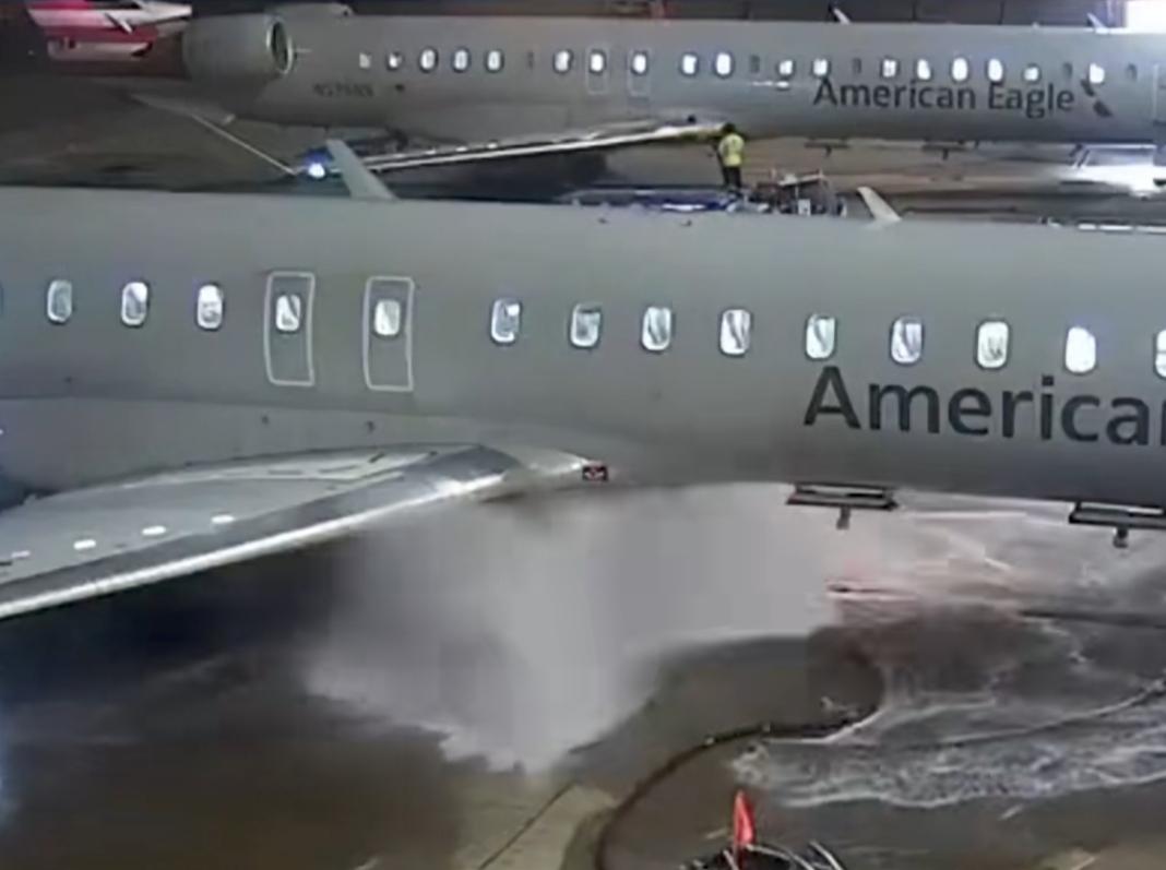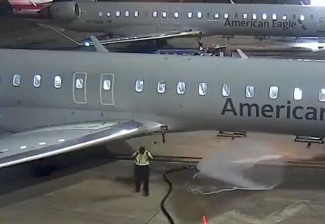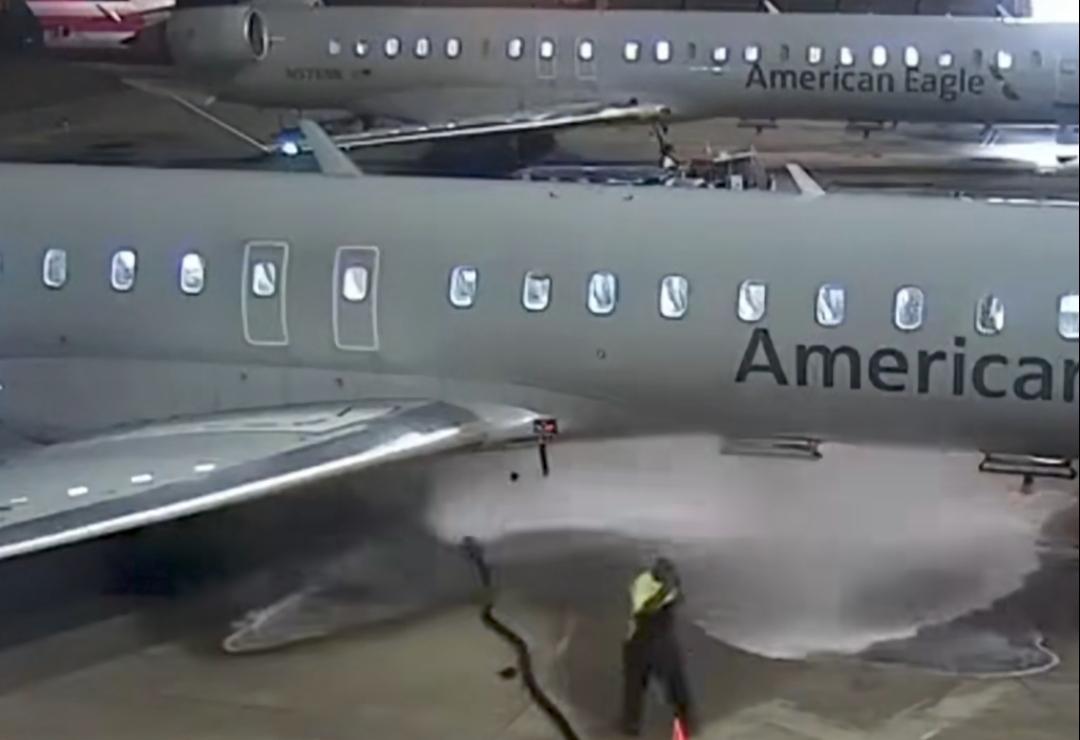 打工人能闯下多大的祸? 近日,在美国达拉斯沃思堡国际机场,一名机场员工在给飞机加