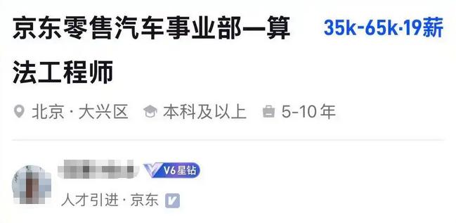 高调回归汽车业务,京东汽车开启百万高薪招聘。 近日在某招聘平台上,京东汽车已经开启了多个岗位的招聘。 其中零售汽车事业部算法工程师给出了35k-65k、19薪的工资水平,按照65k、19薪来算,这一岗位年薪最高可达123.5万元。 京东汽车采销岗则给出了25k-45k、19薪的工资水平,按照45k、19薪来算,年薪也超过了85万元。 根据京东此前公布的消息,京东在三方合作中主要承担销售以及市场需求洞察等任务,车辆的生产由广汽负责,电池和换电技术则由宁德时代提供。 此次京东高调回归汽车业务,喊出了“买车像买手机一样简单”的口号。 目前京东已经布局了近3000家京东养车门店和超4万家合作门店,为其入局汽车行业提供了基础。【来自懂车帝车友圈】