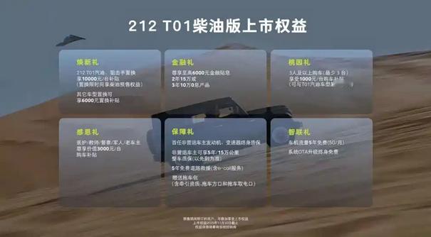 作为国内唯一的前后硬桥越野车,212在10月15日正式发布了T01柴油版本的正式售价,售价为16.59万元。 外观方面,柴油版和汽油版维持了一致,经典的方盒子造型。内饰部分则保持现状。 动力方面搭载来自欧康的康明斯柴油机配合采埃孚8AT,并采用博格华纳的分时四驱系统。【来自懂车帝车友圈】